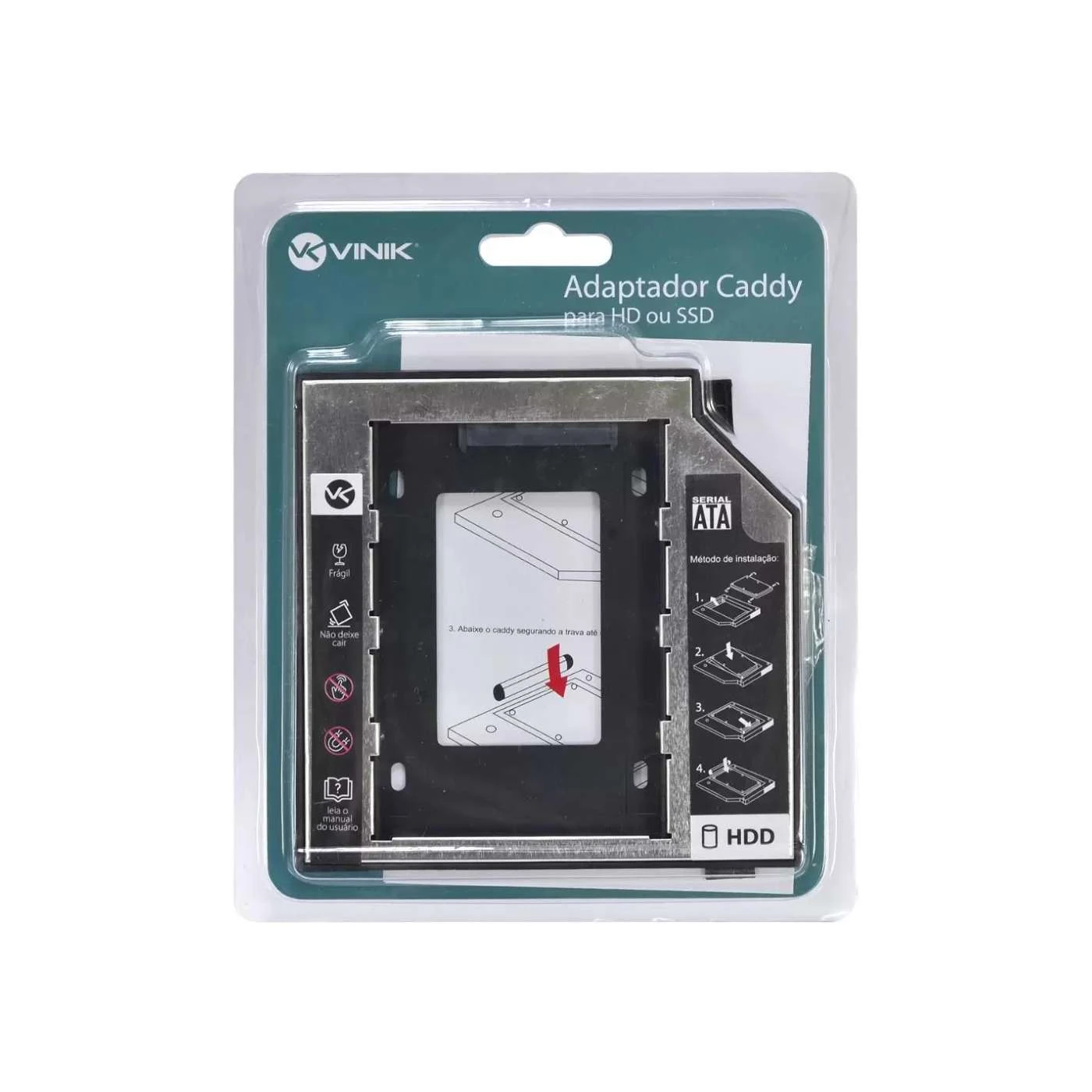 O adaptador Caddy da Vinik permite a substituição do leitor de DVD/CD do seu notebook. Assim é possível aumentar a memória e capacidade de armazenamento inserindo mais um HD/SSD no seu dispositivo.