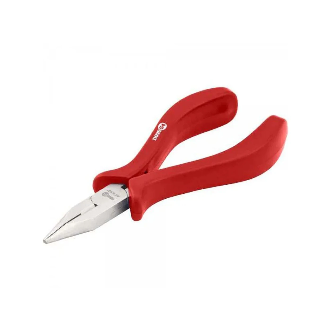 Alicate Bico Meia-Cana Reto possui função de corte, mordentes com pontas estriadas e parte central côncava, confeccionado em aço carbono e acabamento niquelado que proporciona maior resistência a oxidação/corrosão.