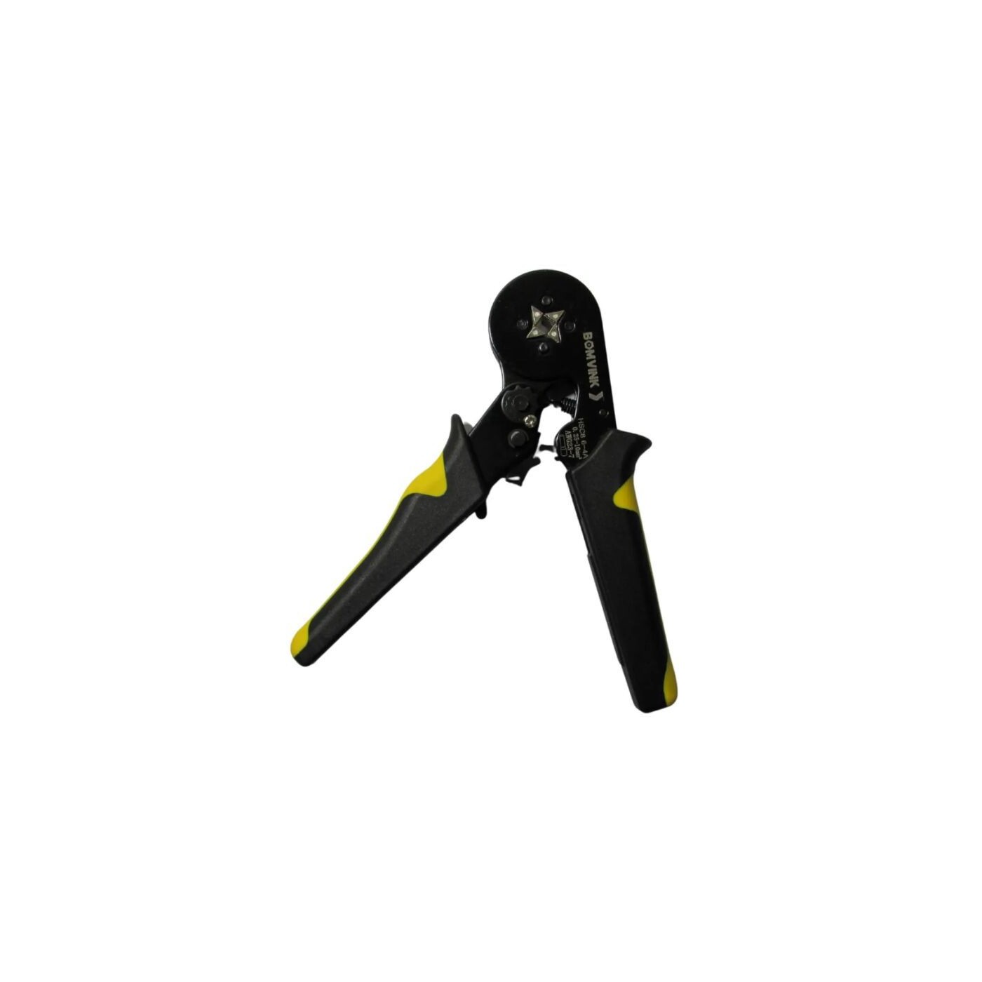 O Alicate para Crimpar Bomvink BOM-1713 é uma ferramenta profissional indicada para montagem e manutenção de cabos de rede e telefonia. Possui sistema de catraca que garante precisão, segurança e firmeza na crimpagem, além de cortar e decapar fios com facilidade. Compatível com conectores RJ11, RJ12 e RJ45, é ideal para uso técnico e doméstico.