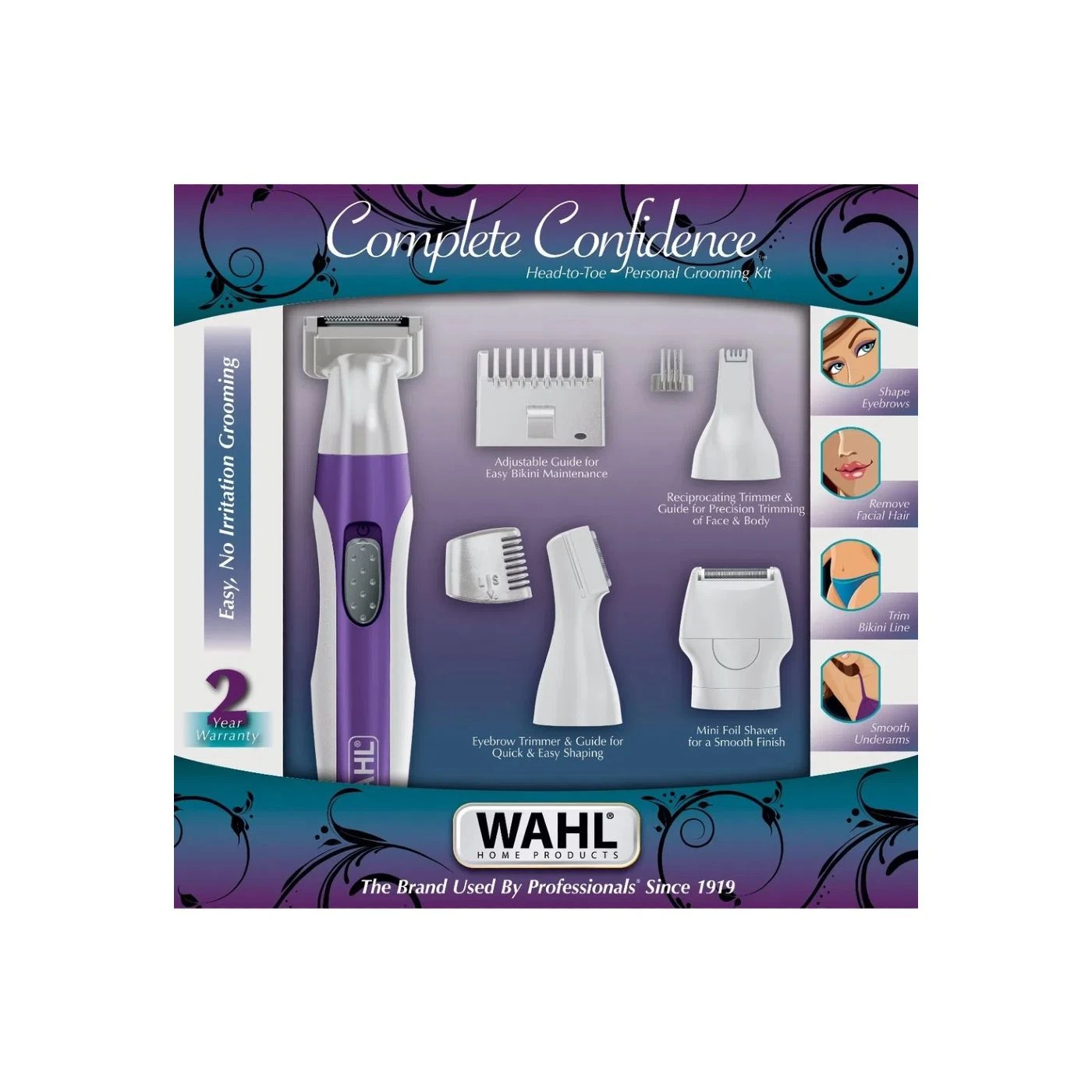 Este kit aparador de pelos é o mais completo para aquelas mulheres que desejam remover pelos do rosto e do corpo com facilidade e praticidade. Ele funciona à pilha e possui 4 lâminas intercambiáveis, 1 para raspagem completa, 1 para marcações retilíneas e remoção de volume das sobrancelhas, 1 para detalhes e 1 para finalização que faz a mesma função de uma navalha. Possui um Pente ajustável em 4 posições (2mm, 3mm, 4mm e 5mm), um pente para sobrancelhas com 2 posições (2mm e 4mm) e um pente para detalhes.