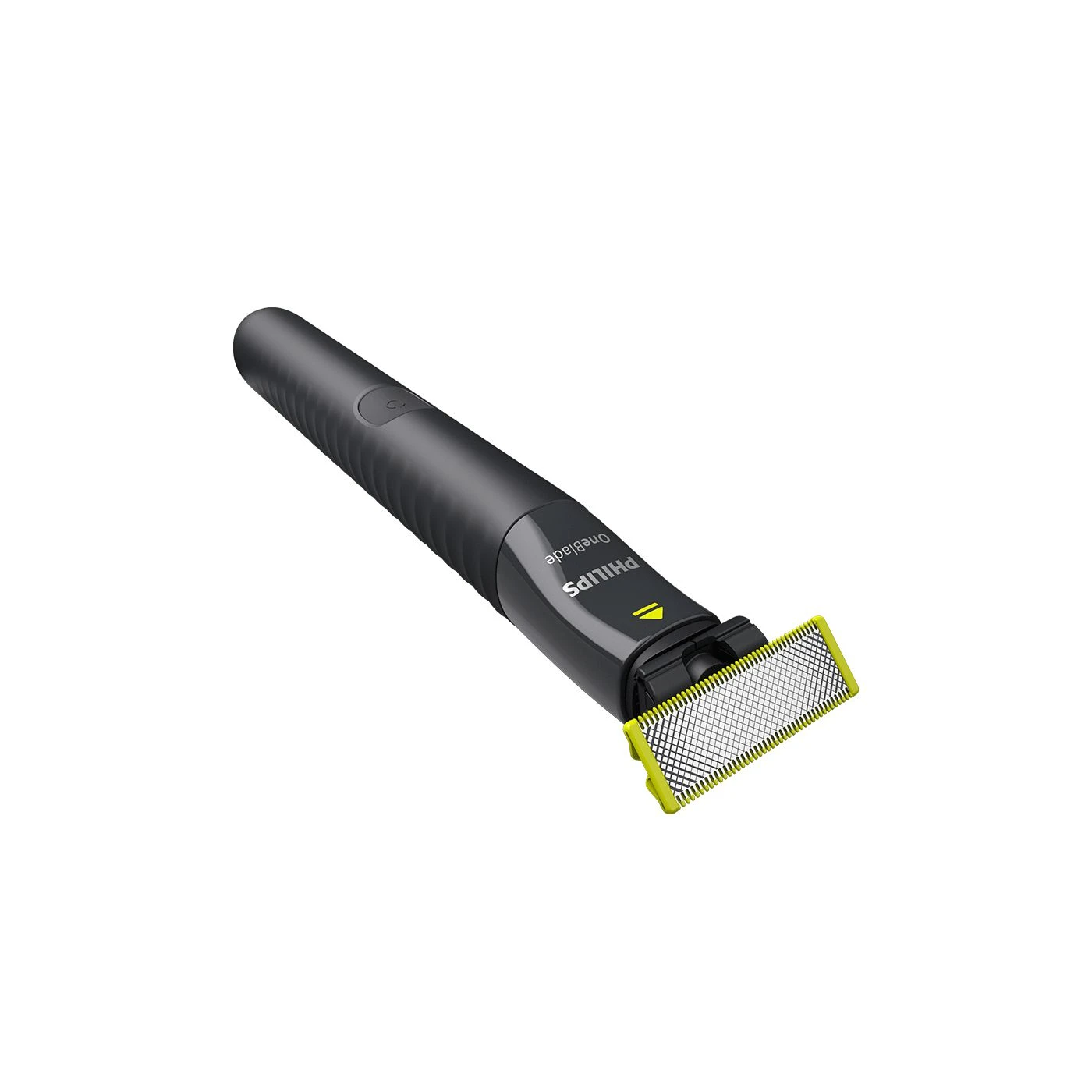 Para proteger sua pele, OneBlade mantém uma micro distância de segurança entre a lâmina e a pele. Use no sentido contrário ao pelo para um barbear mais rente.