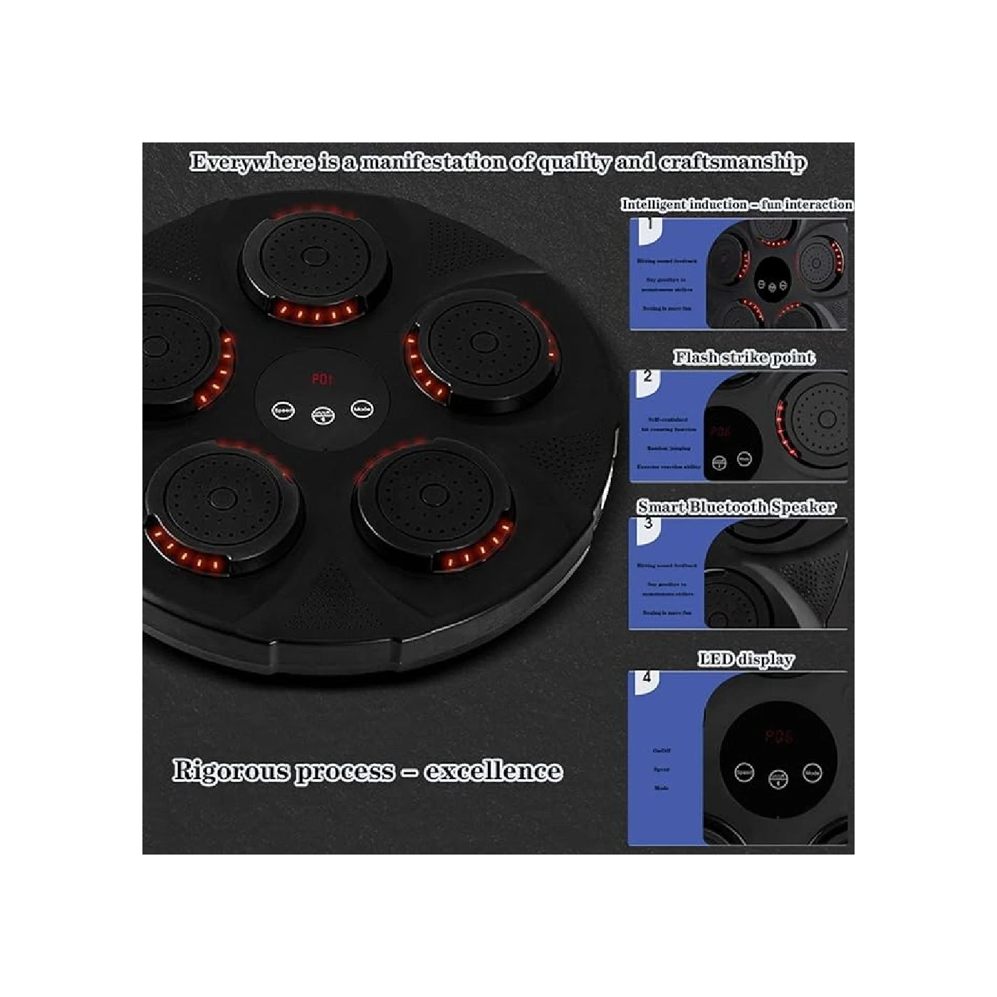 A máquina de boxe de música é equipada com 5 pontos de golpe intermitentes RGB, os pontos de golpe acendem aleatoriamente com a batida da música, você pode praticar boxe com o ritmo da música e das luzes. Você também pode praticar a coordenação olho-mão e os reflexos de socos.