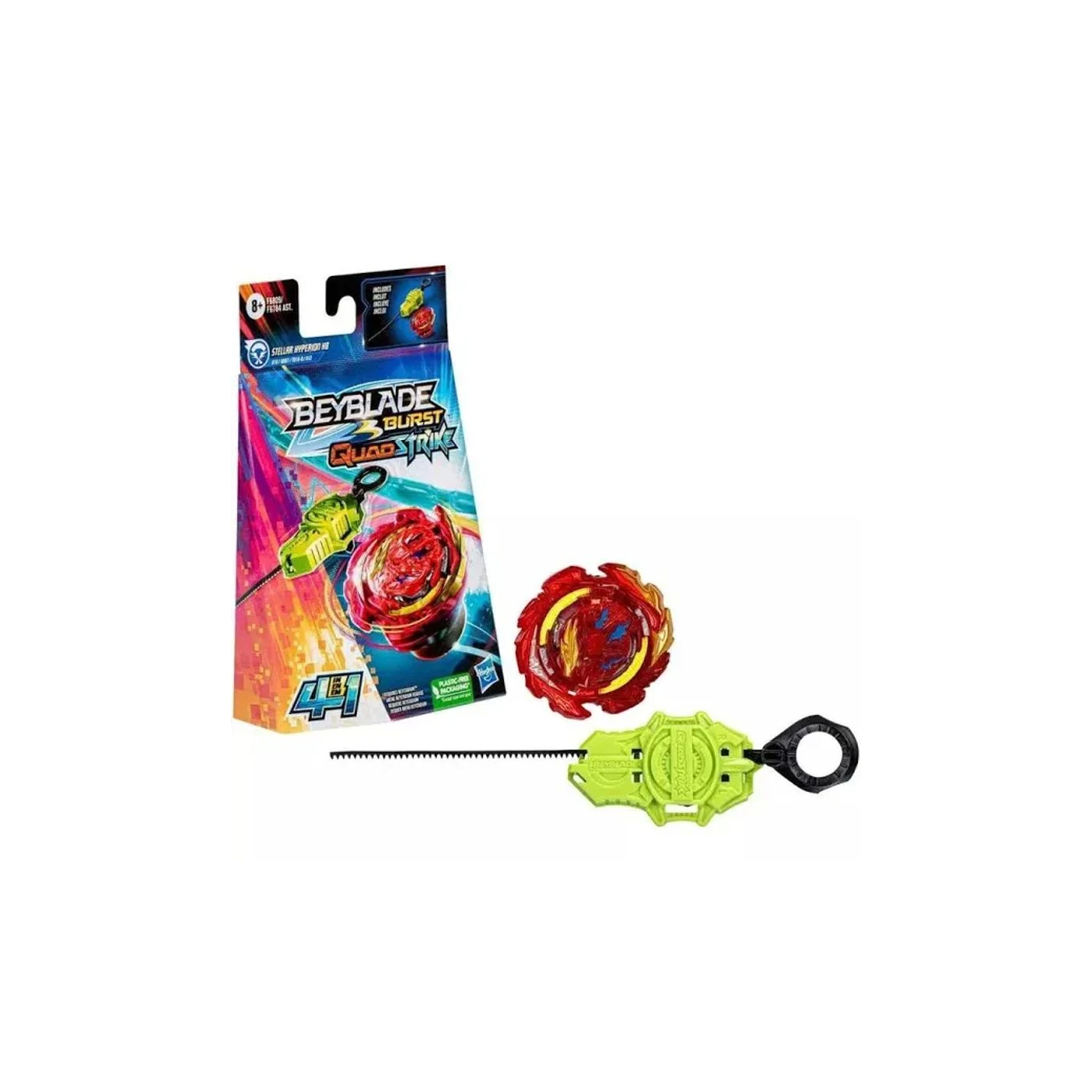 - Contém: 1 Beyblade Burst QuadStrike Stellar Hyperion H8 Com Lançador