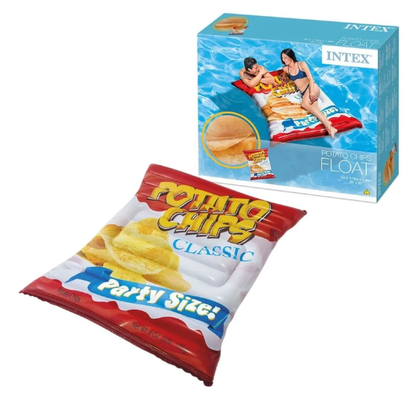 A Boia Inflável - Bote Colchão Batata Chips - Intex é uma opção divertida e confortável para quem deseja desfrutar de momentos de lazer na água. Com um design inspirado nas batatas chips, ela conta com núcleos vibrantes e chamativas, o que a torna facilmente acessível em meio à multidão.