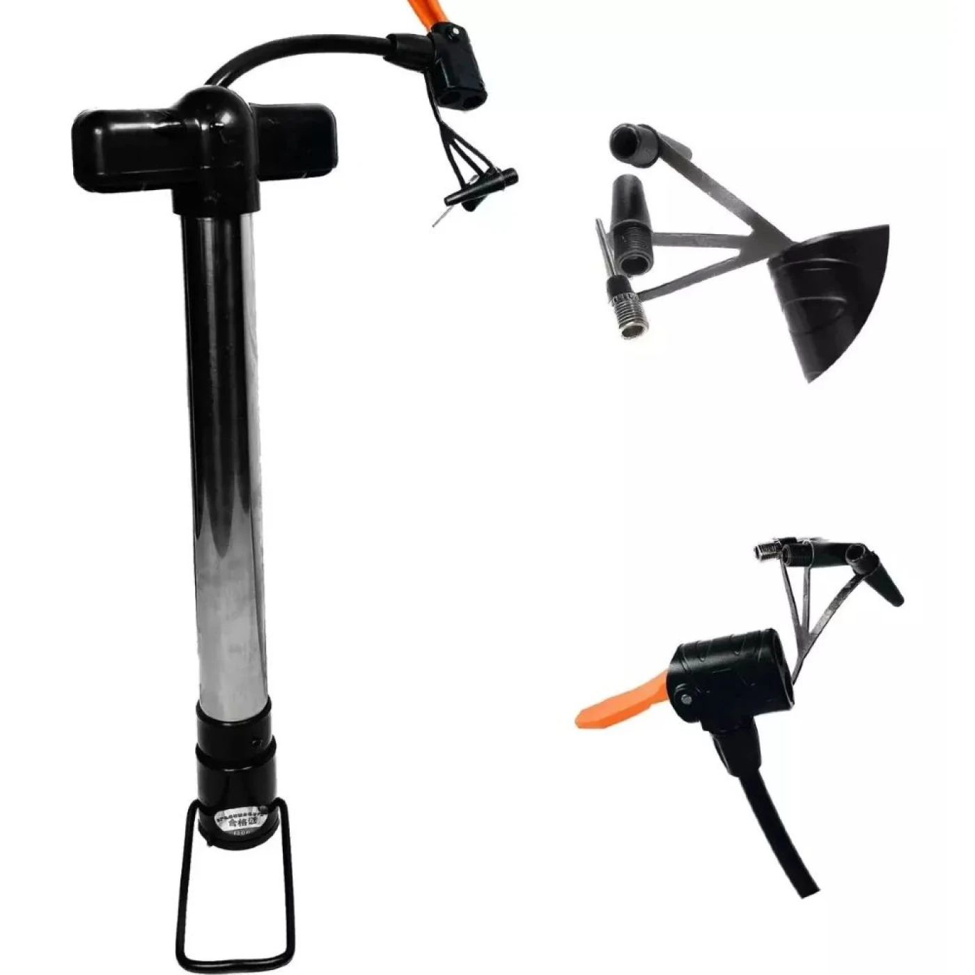 - Projetada para inflar através do pé, pneus de bicicletas, carro, moto, bolas, balões, boias, colchões de ar e etc.