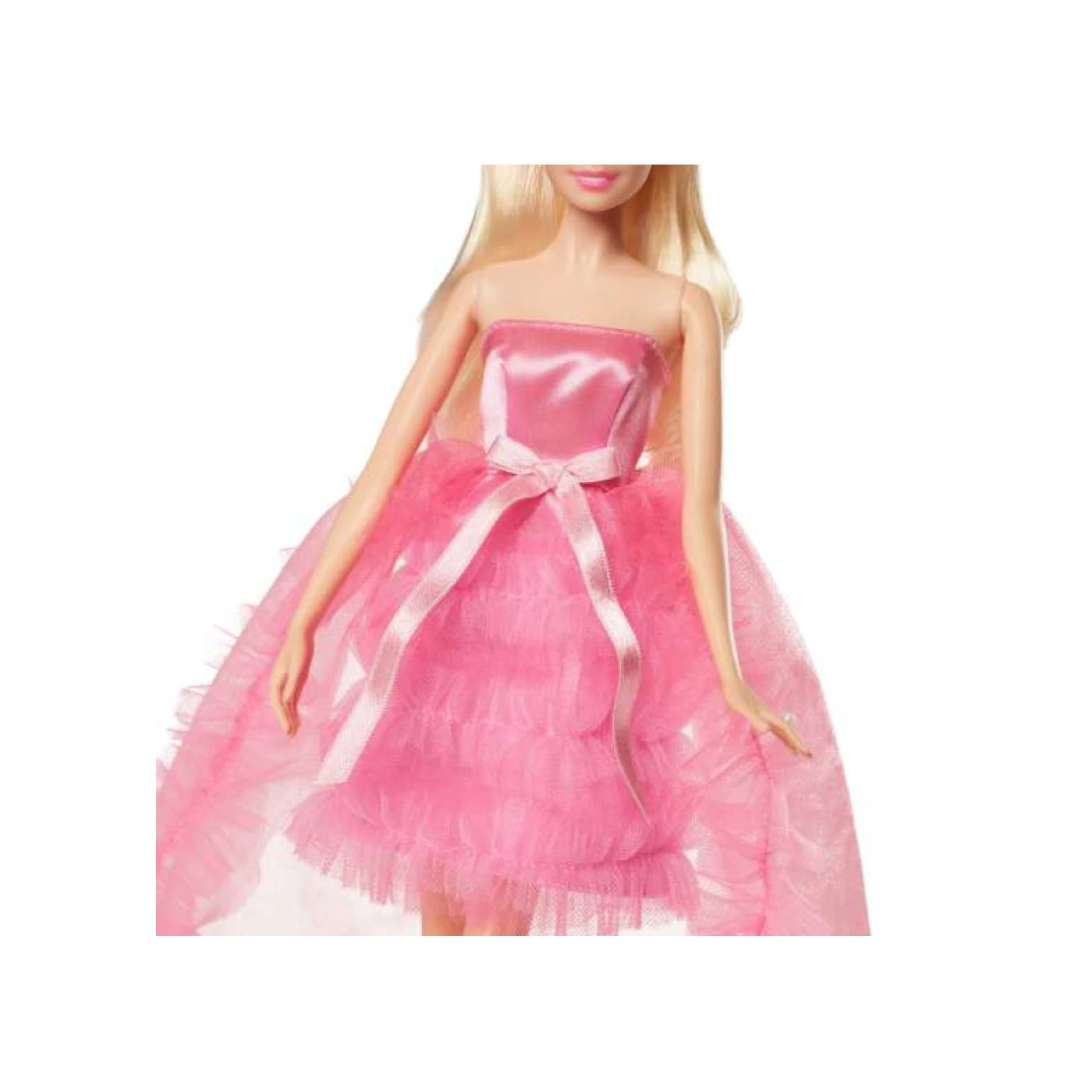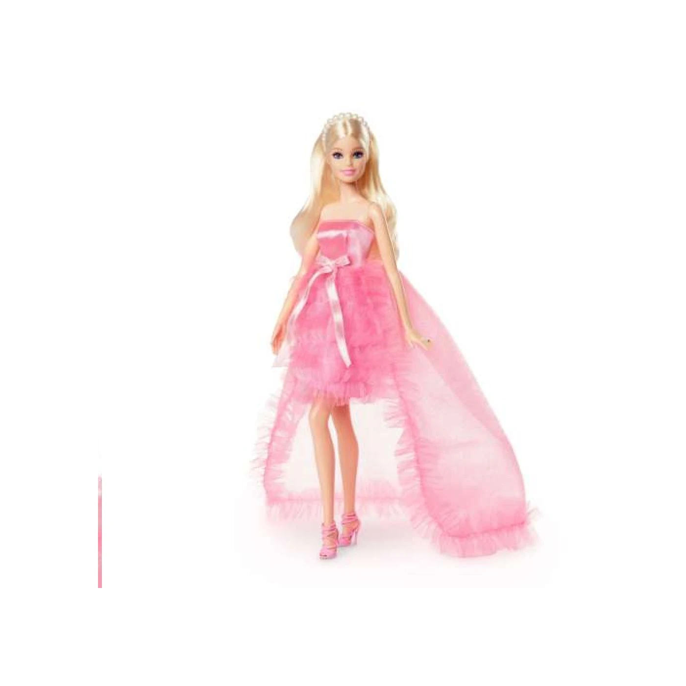 A Barbie deseja Feliz Aniversário! Esta Barbie Birthday Wishes está arrasando em rosa com um vestido de cetim e tule. Ela é um presente encantador para o grande dia de qualquer pessoa! Sua adorável embalagem para exibição com espaço para escrever um bilhete faz com que seja perfeita também para colecionadores. As bonecas Barbie não ficam em pé sozinhas. As cores e as decorações podem variar.