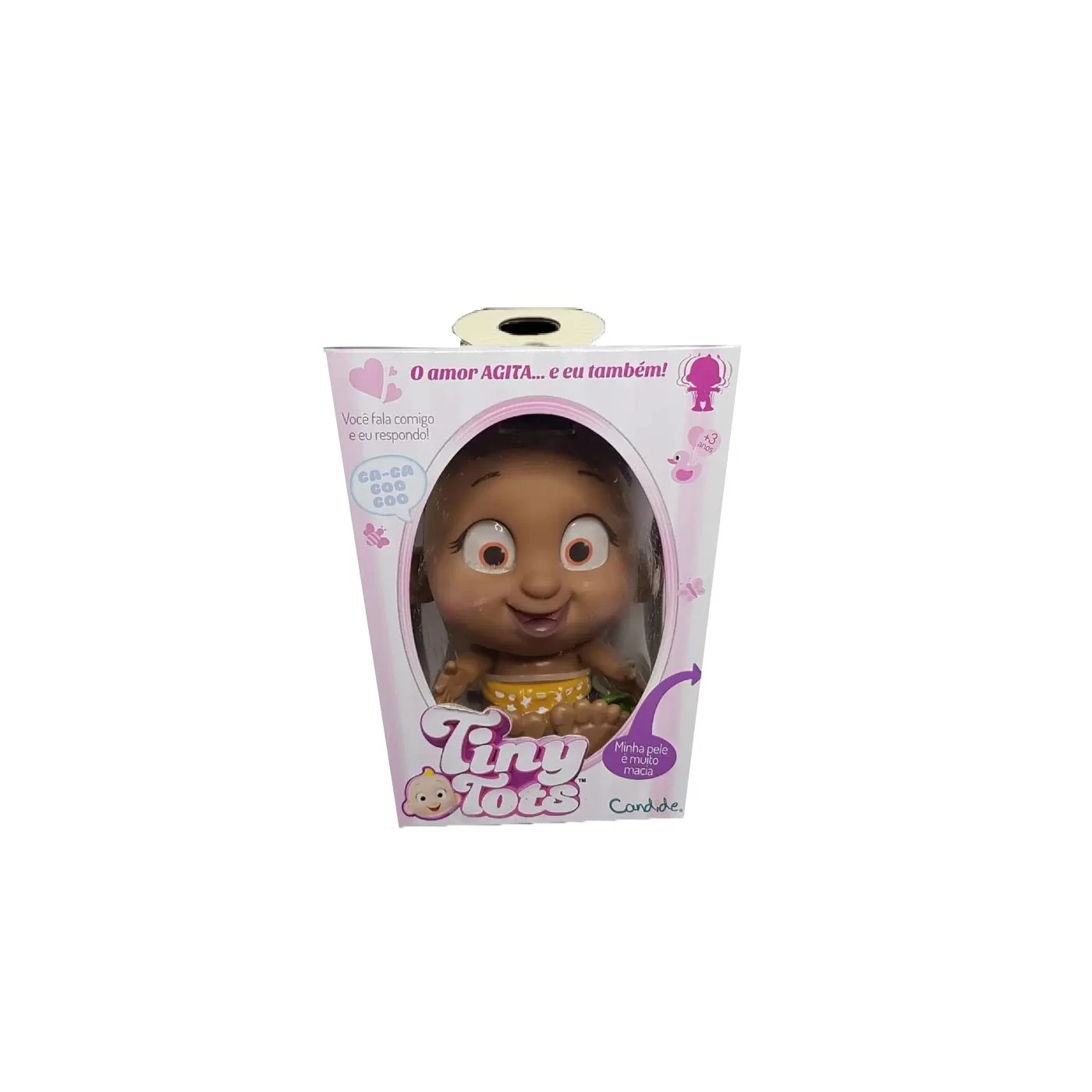 O Boneco Interativo Candide Tiny Tots é fofo, doce e pequeno. Igual um bebê de verdade. Ele tem uma pele macia e gostosa de tocar. e, além disso, é interativo e sensível ao toque. Possui uma personalidade que vai evoluindo com o passar do tempo.
