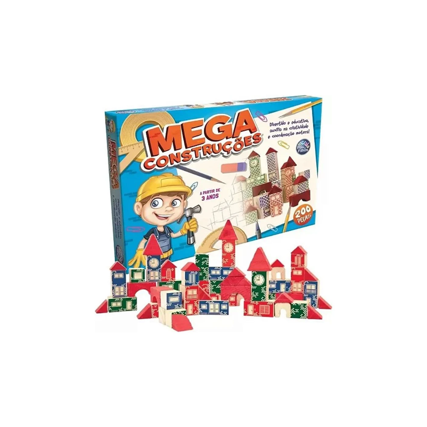 Um jogo composto por 200 peças confeccionadas em madeira reflorestada e tinta atóxica.