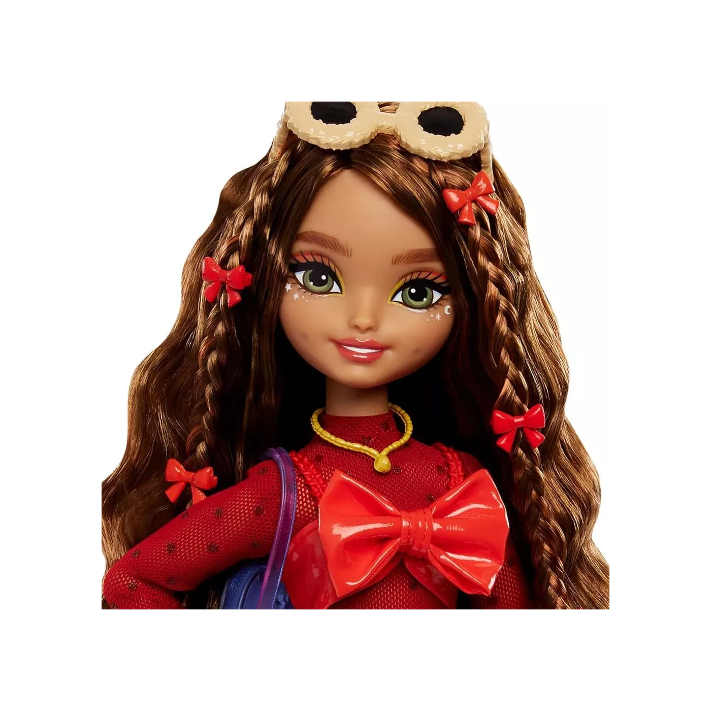 A boneca Teresa tem cabelos castanhos compridos com presilhas de laços vermelhos, mostrando sua personalidade doce!