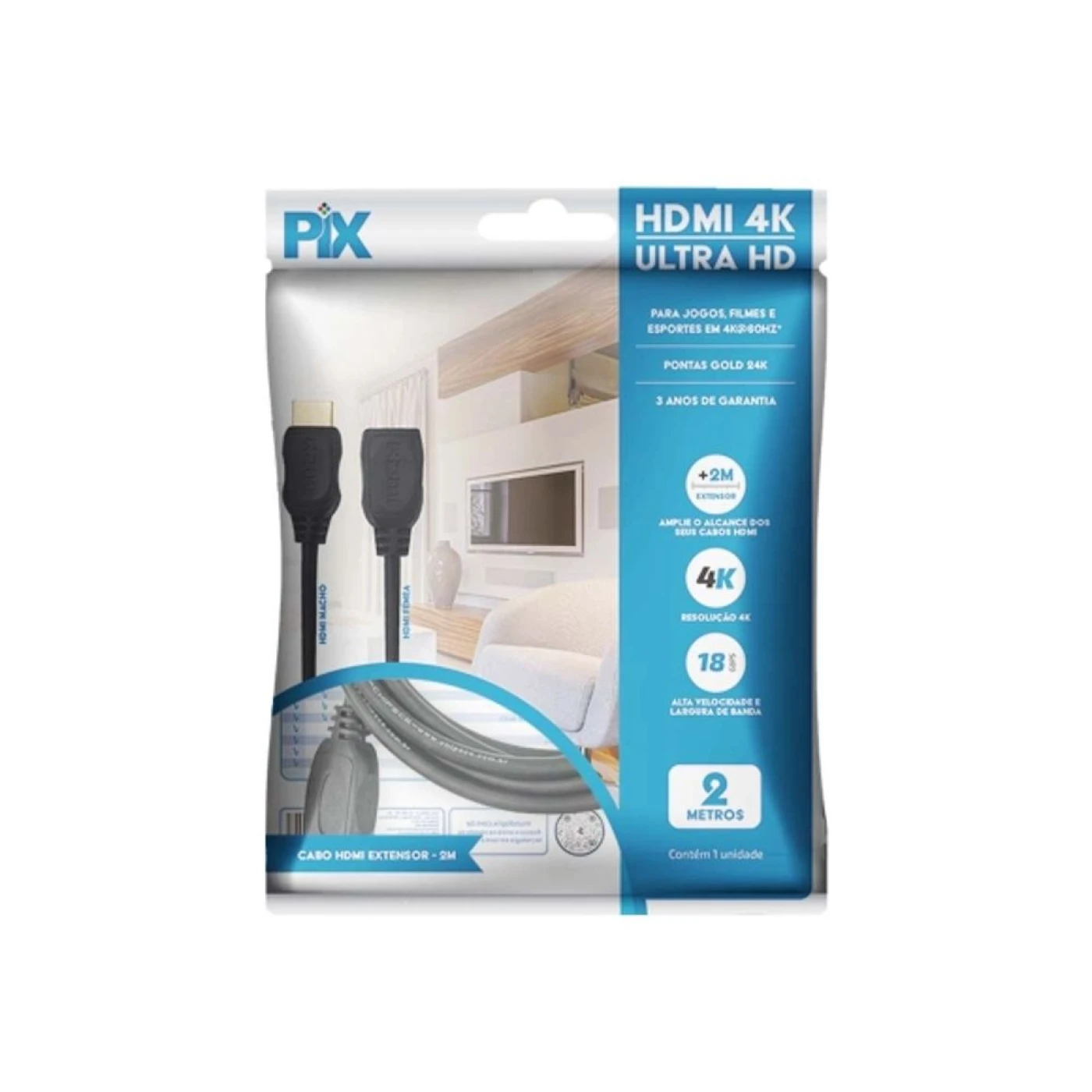 Cabo extensor hdmi fêmea x hdmi macho, que permite conectar aparelhos de dvd, sintonizadores de hdtv, televisores, entre outros.
