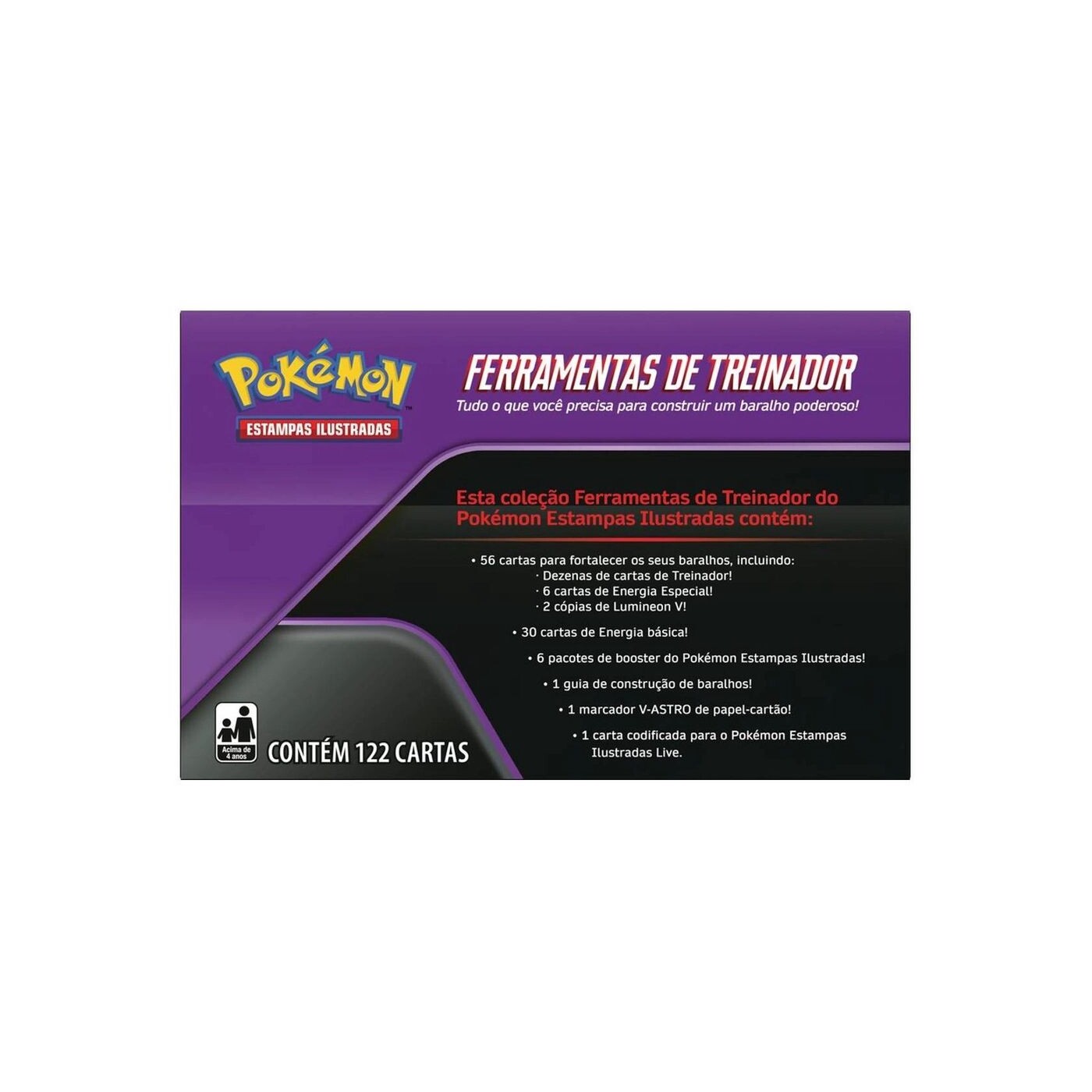 Dentro desta caixa, você encontrará uma infinidade de cartas de Treinador e cartas de Energia, além de um guia que te ajudará a construir um baralho que destacará os seus melhores Pokémon! Você encontrará tudo o que precisa para tomar asmelhores decisões enquanto monta o seu baralho.