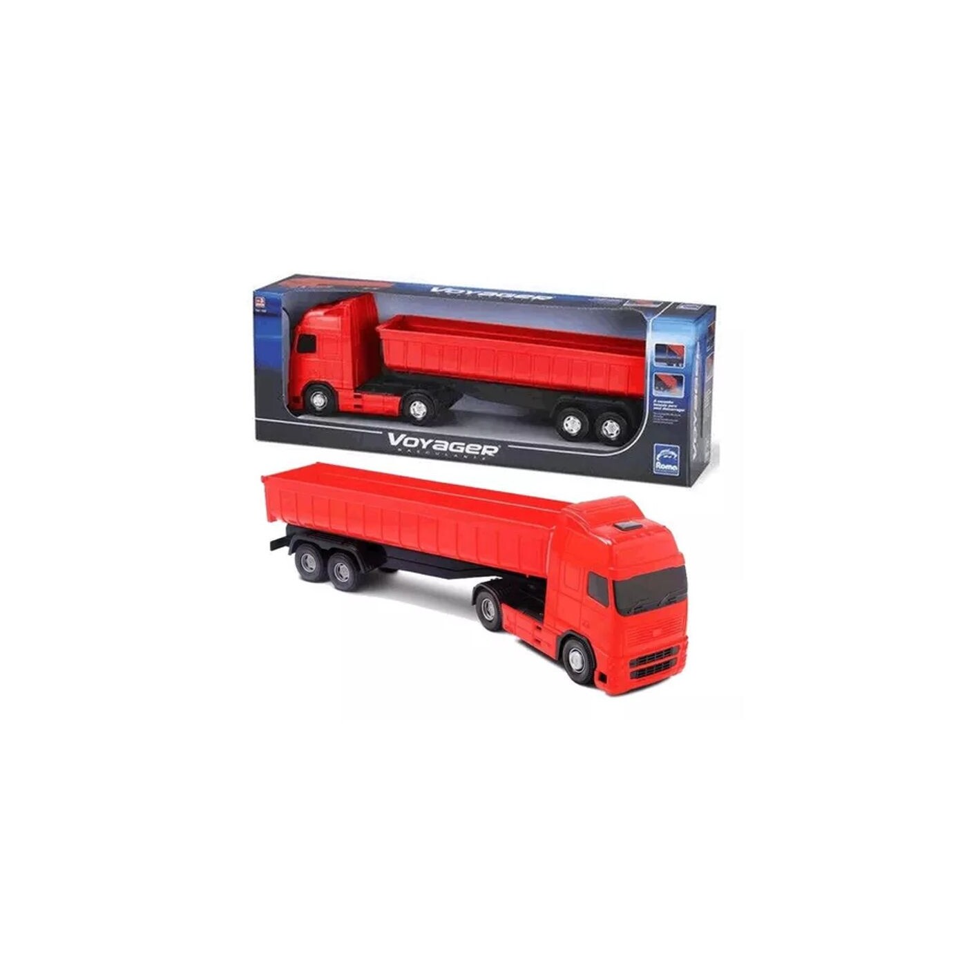 Caminhão Voyage Basculante Roma 42cm - 1352 Informações do Produto: O Caminhão Voyager do Roma agora em sua versão Basculante! Com uma caçamba para carregar e descarregar o que quiser. Possui trava para manter a caçamba levantada e abre a tampa traseira.