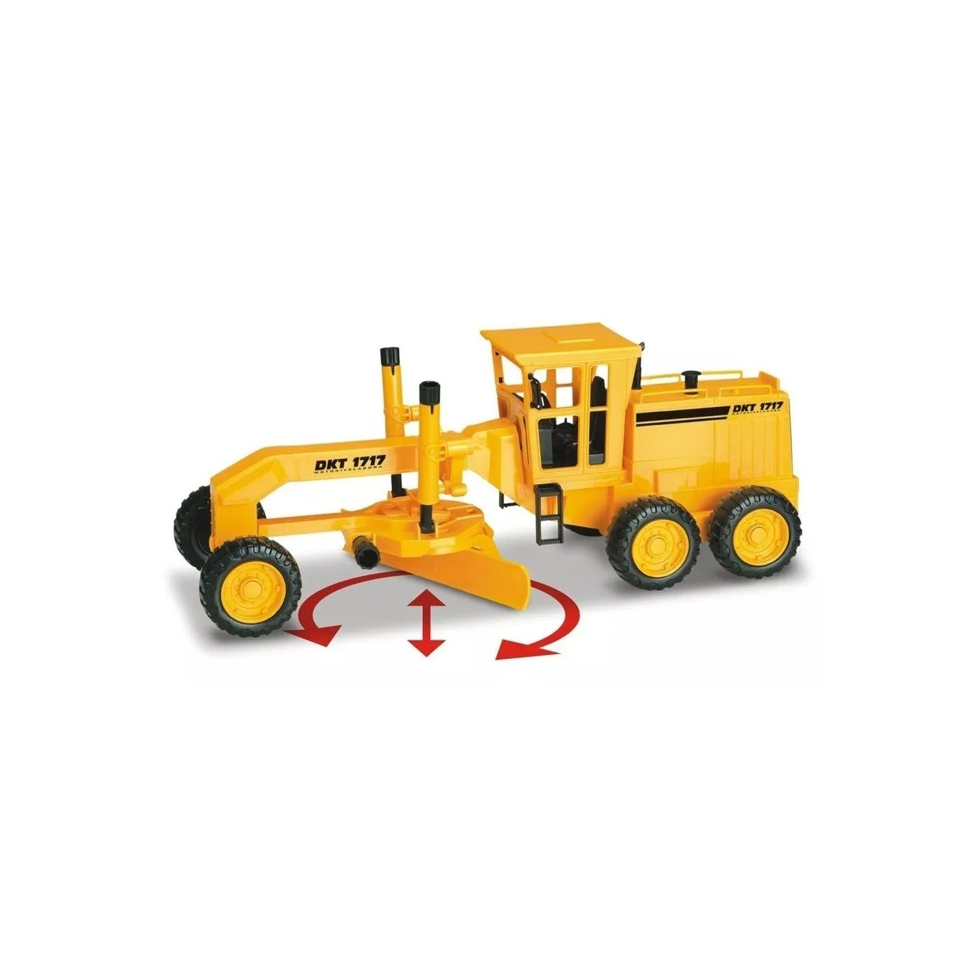 Tamanho Motoniveladora: 40cm de comprimento, 14cm de largura e 15cm de altura.