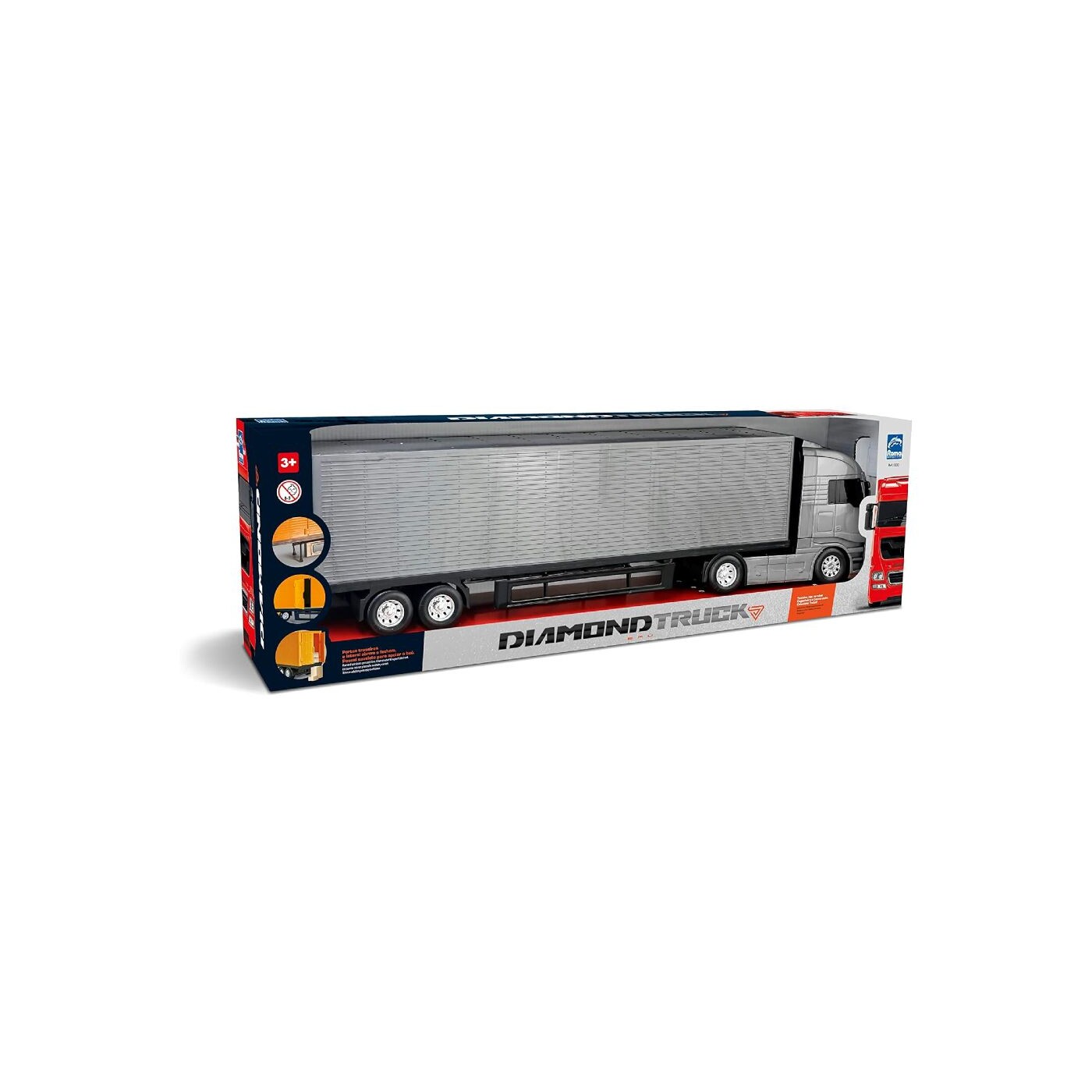 O Caminhão Diamont Truck Baú Possui Rodas Livres, Giro Da Cabine Livre, Cavaletes Montáveis Para Apoiar O Baú E Sua Carroceria Encaixa E Desencaixa Na Cabine A Porta Traseira E Porta Lateral Do Baú Abre E Fecha Com Encaixe Estimula A Brincadeira De Faz De Conta Onde As Crianças Criam E Representam Papéis Do Mundo Adulto Estas Atividades, Além De Favorecer A Aprendizagem De Papéis Sociais E Formas De Organização Social, Provoca Intensa Movimentação Corporal (Coordenação Manual E A Coordenação Motora) Pelo Espaço Quando Empurram E Movimentam O Caminhão