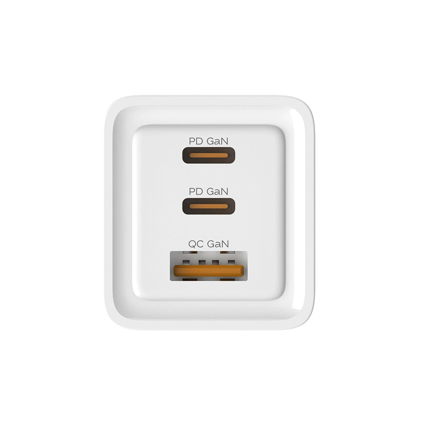 O carregador de parede universal W65GAN da ELG foi desenvolvido especialmente para dispositivos que permitem carga rápida (Quick Charge e Power Delivery) com capacidade até 3.0A. Possui tecnologia GaN, que permite que mesmo carregadores com estrutura mais compacta, consigam realizar cargas mais rápidas e muito mais eficientes, porém com menor aquecimento. Para isso dispõe de duas saídas USB Tipo-C e uma PD e uma USB-A, sendo ambas de carga rápida. O carregador entrega até 65W de potência total.