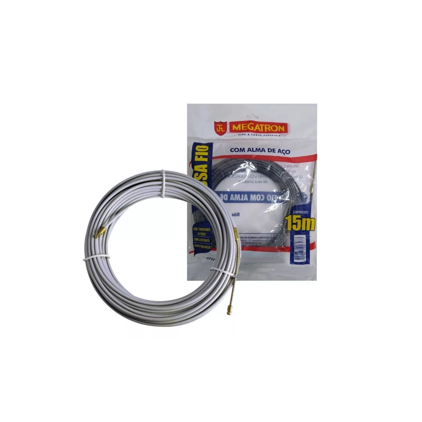 O Passa fio Megatron é durável, resistente e flexível, proporcionando facilidade nas instalações elétricas, a passa cabo não transmite choque, não é cortante e ele ainda é antiferrugem, sua alma é em aço latonado, seu corpo sextavado é de fabricado em polipropileno.
