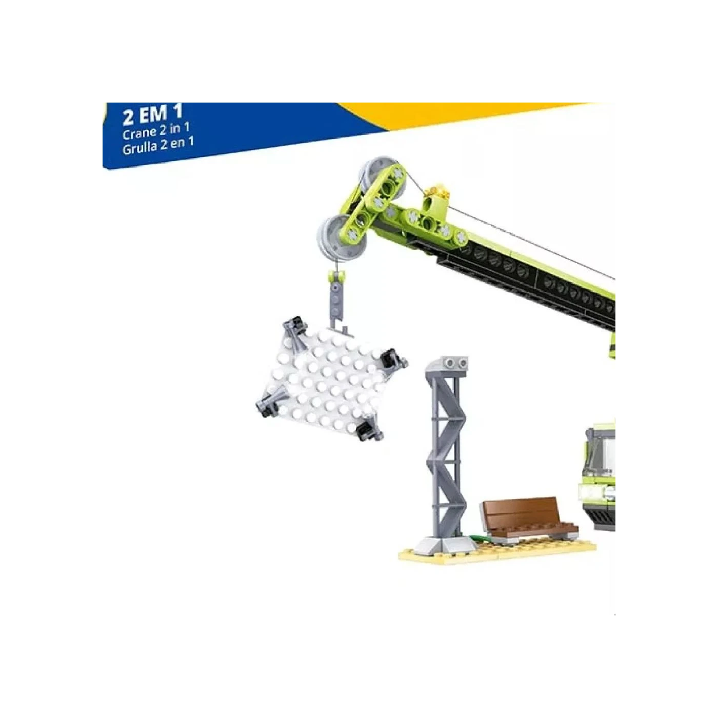 - Para acompanhar este ritmo é só encaixar as 481 peças do Brinquedo de encaixe Cidade em Obras para formar um guindaste e ajudar na construção da cidade.