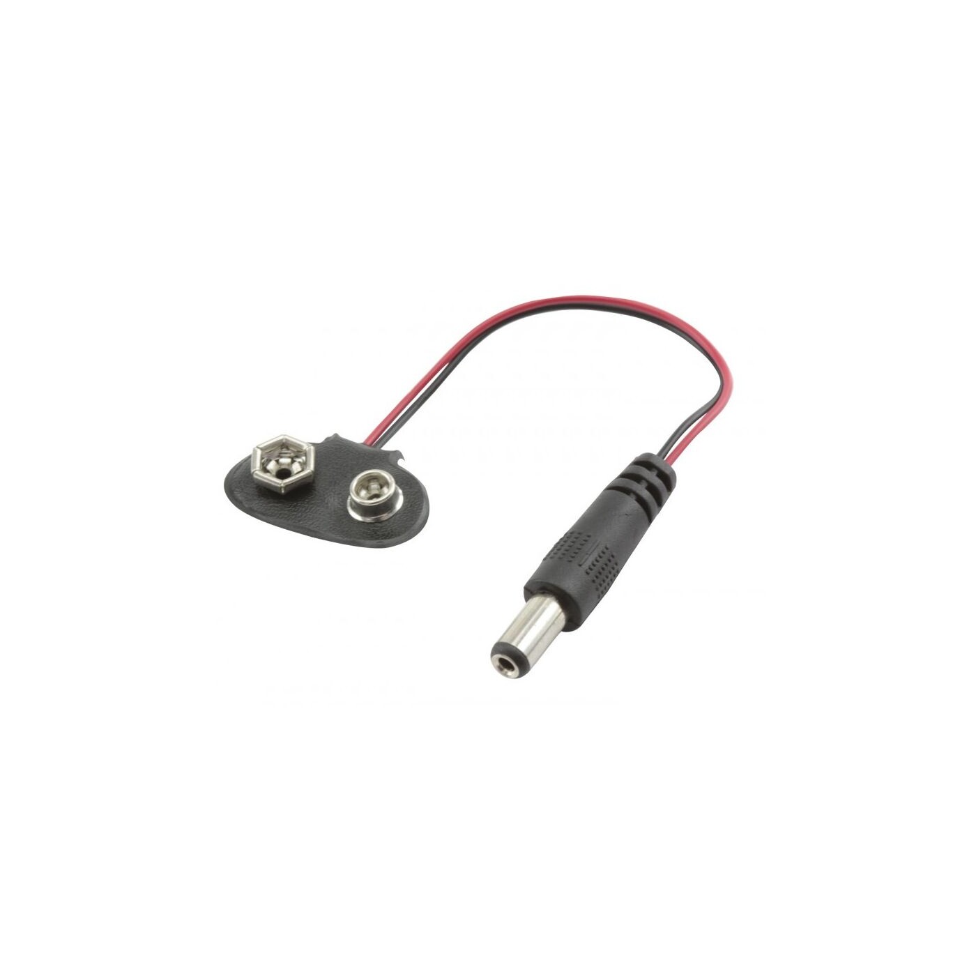 - Este Conector de Bateria conta em uma de suas extremidades com um conector ( clip ) para ligação com a bateria 9V e na outra com um plug P4 para conexão com o Arduino, por exemplo.