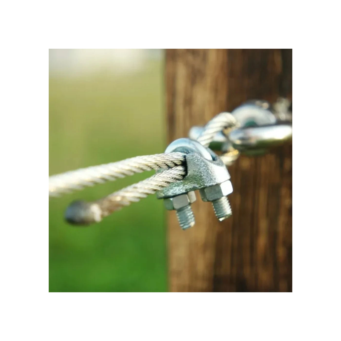 Clips de aço galvanizado de alta resistência, ideais para fixação e segurança de cabos de aço de 1/4" (6,4 mm). Produto durável, confiável e de fácil instalação, indicado para uso em construção, reparos e projetos industriais. Marca S/M, modelo 3560900014.