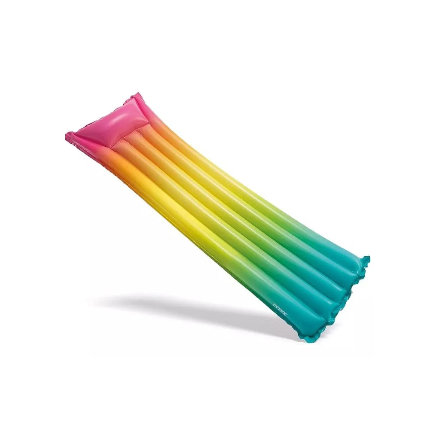 Esta boia arco-íris para piscina é brilhante e vibrante e perfeito para desfrutar de algum tempo na água.