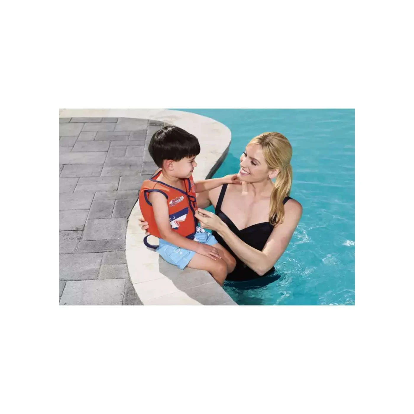 » O colete flutuador da Bestway possui espuma para ajudar na flutuação da criança.
