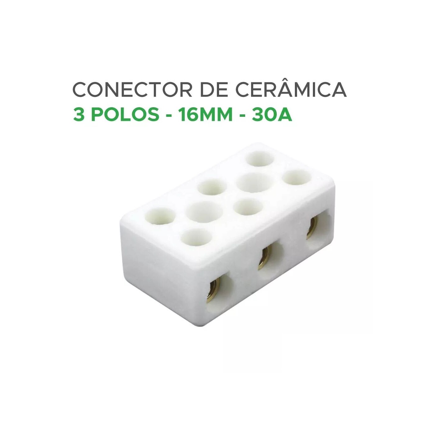 CONECTOR DE CERÂMICA P/ CHUVEIRO 3 POLOS 16MM - 30A
