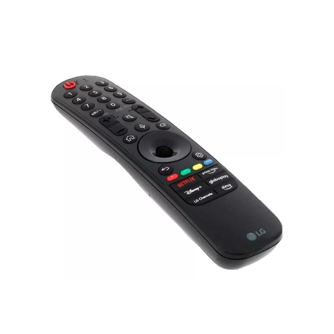 O controle remoto Magic TV LG MR23GA é um acessório essencial para a sua televisão. Com a função de comando de voz, basta apertar o botão e falar o que deseja buscar, e a TV apresentará as opções para você.