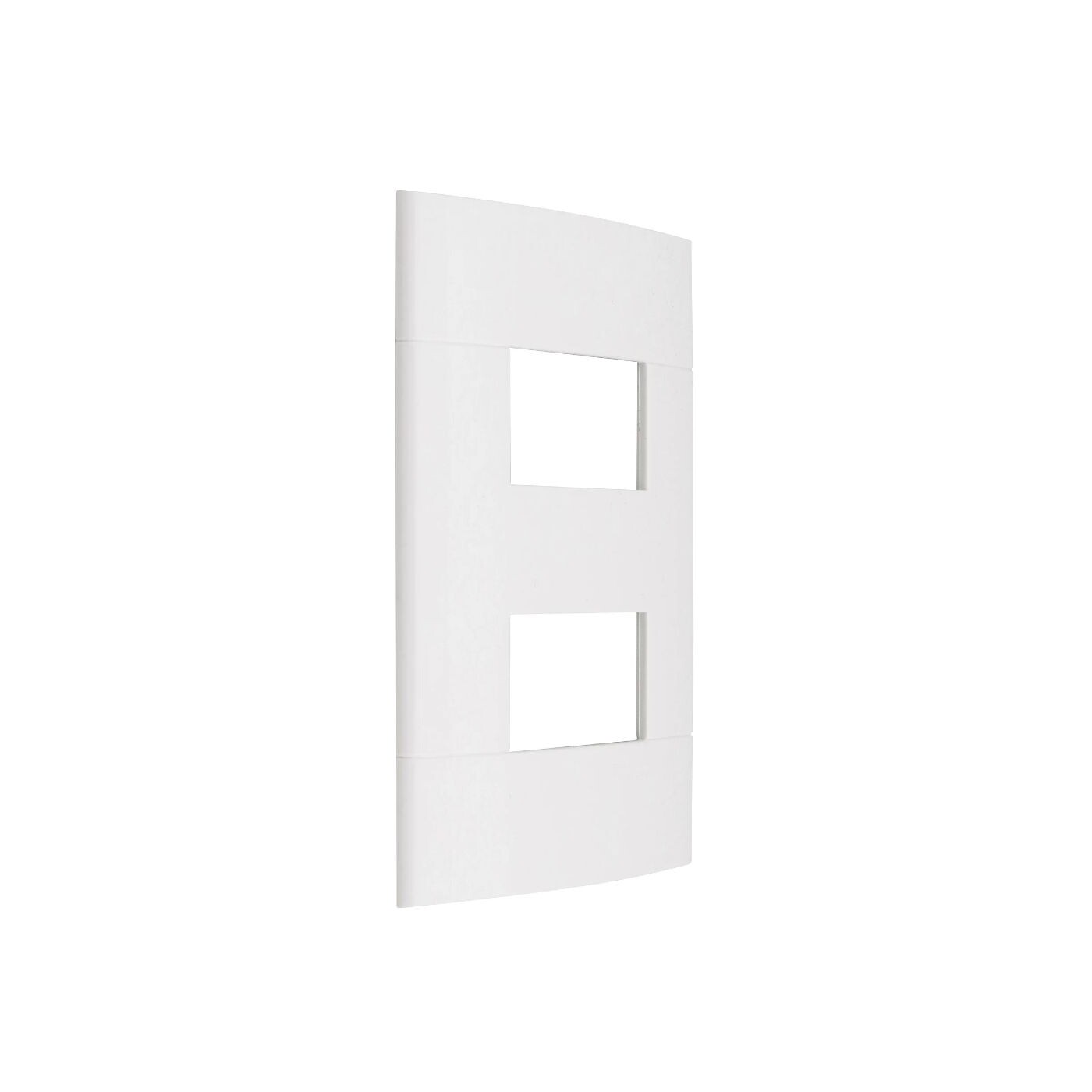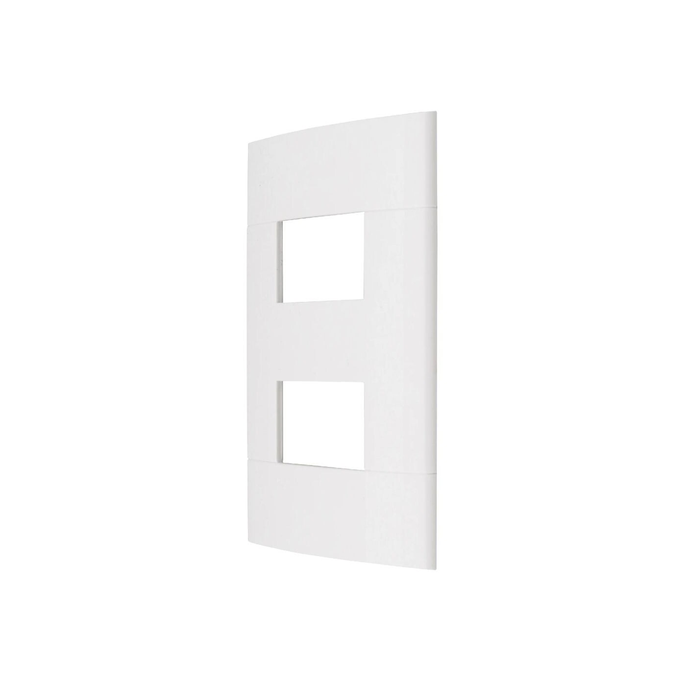 Com dimensões padrão de 4x2, a placa é projetada para acomodar dois módulos, proporcionando flexibilidade na instalação de interruptores, tomadas e outros componentes elétricos. Sua cor branca confere um aspecto clean e versátil, adaptando-se facilmente a diferentes estilos de decoração.