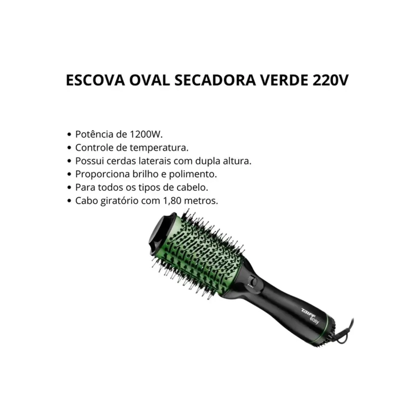 Escova oval secadora taiff easy verde 1200w 220v