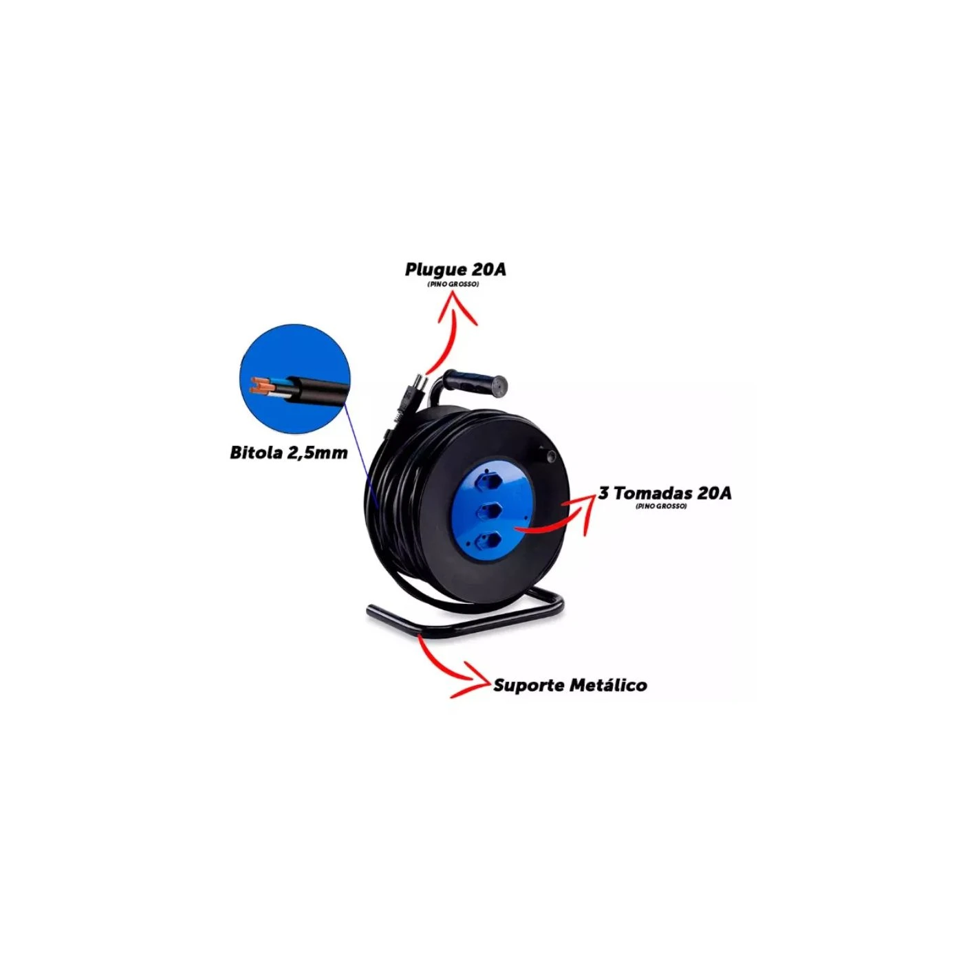Extensão Tripolar Carretel 20A 30M 3 Tomadas - Force Line