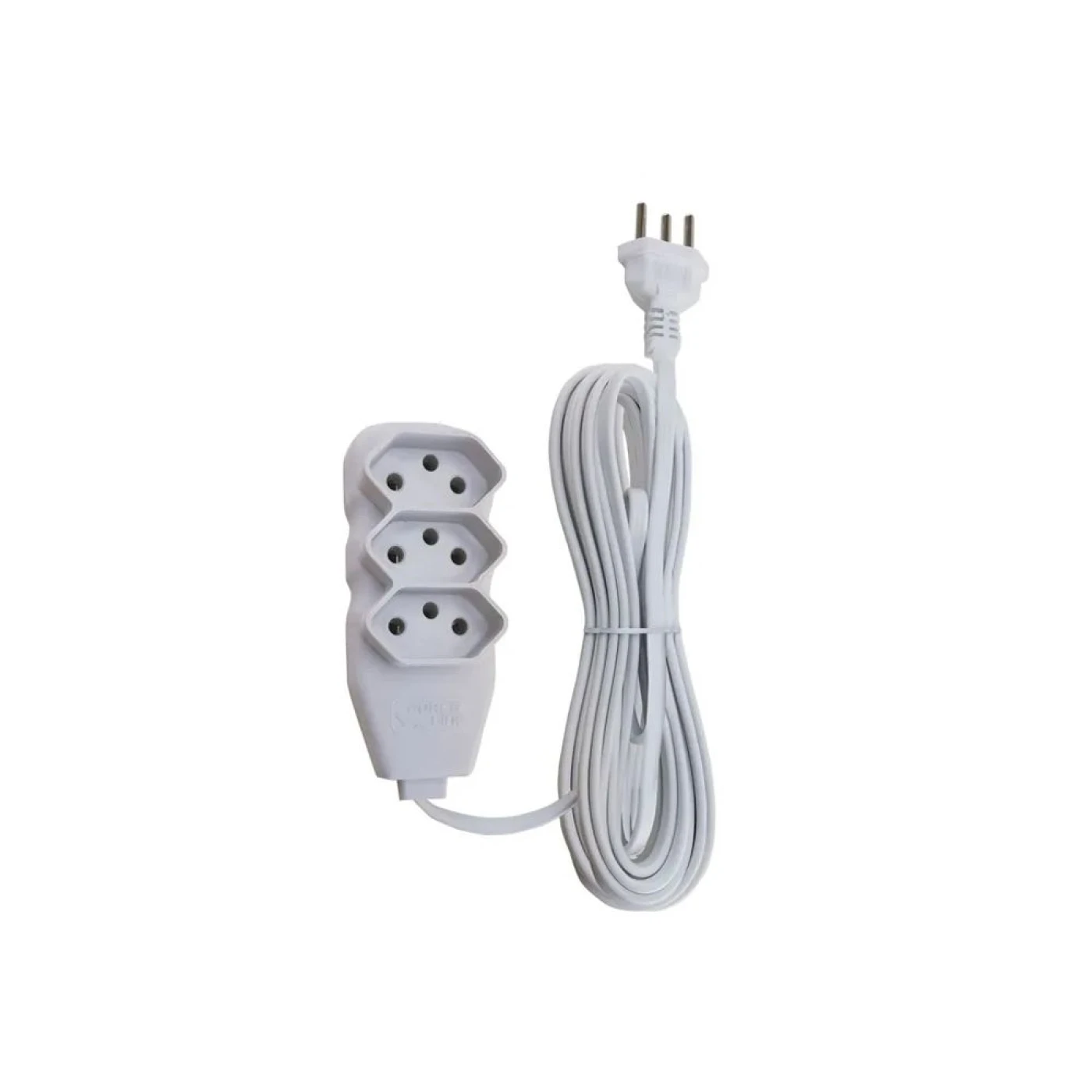 Com três tomadas, a extensão permite conectar múltiplos aparelhos e dispositivos eletrônicos simultaneamente, evitando a necessidade de instalação de várias tomadas fixas no ambiente. Essa característica é especialmente útil em locais onde a demanda por energia elétrica é maior do que a quantidade de tomadas disponíveis.