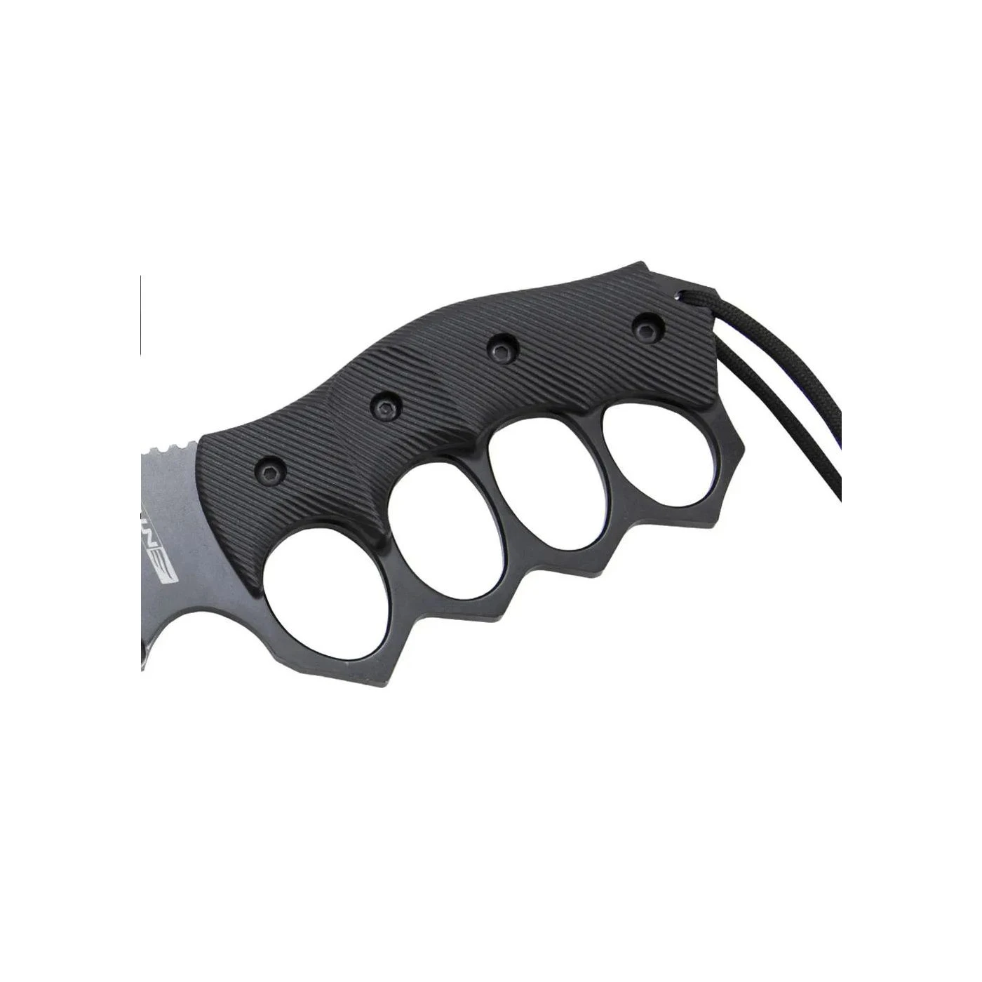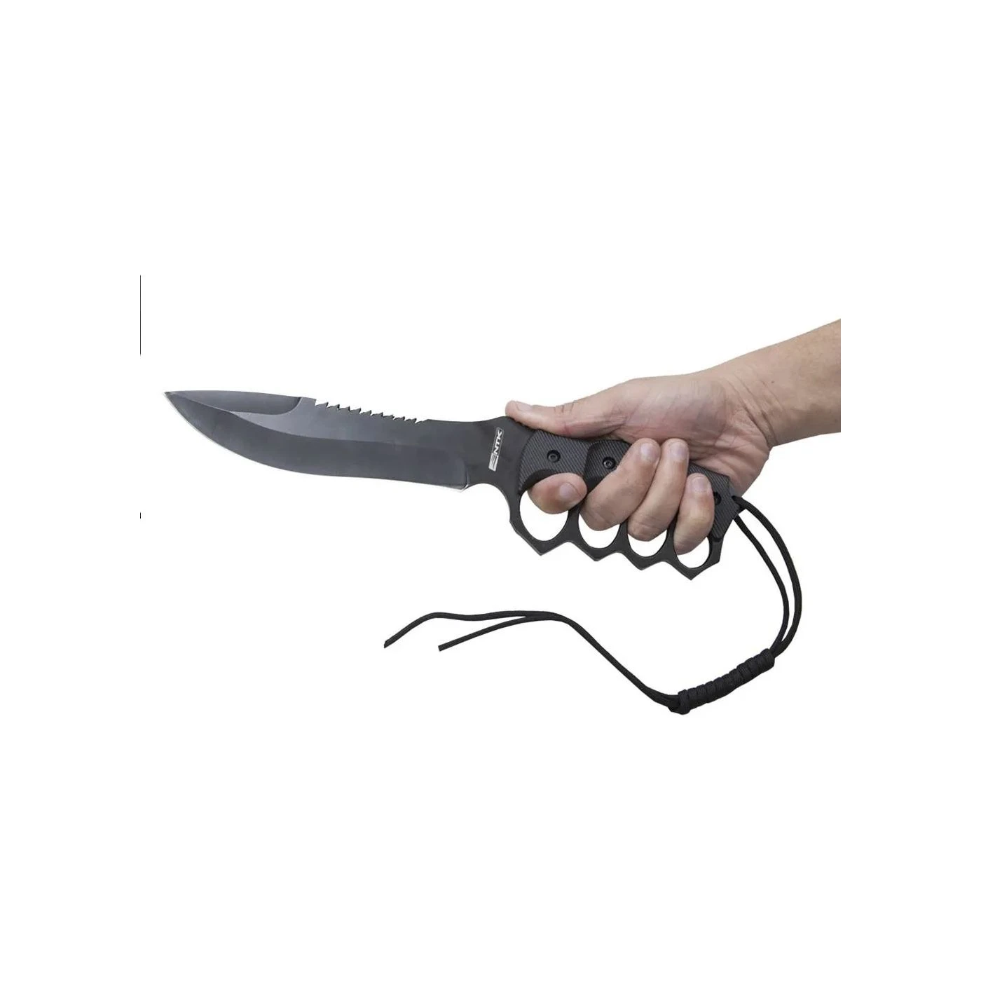 É uma faca com design extremamente diferenciado, lâmina em aço inox 420, com desenhos vazados e formas serrilhadas para dar um aspecto único e maior performance.