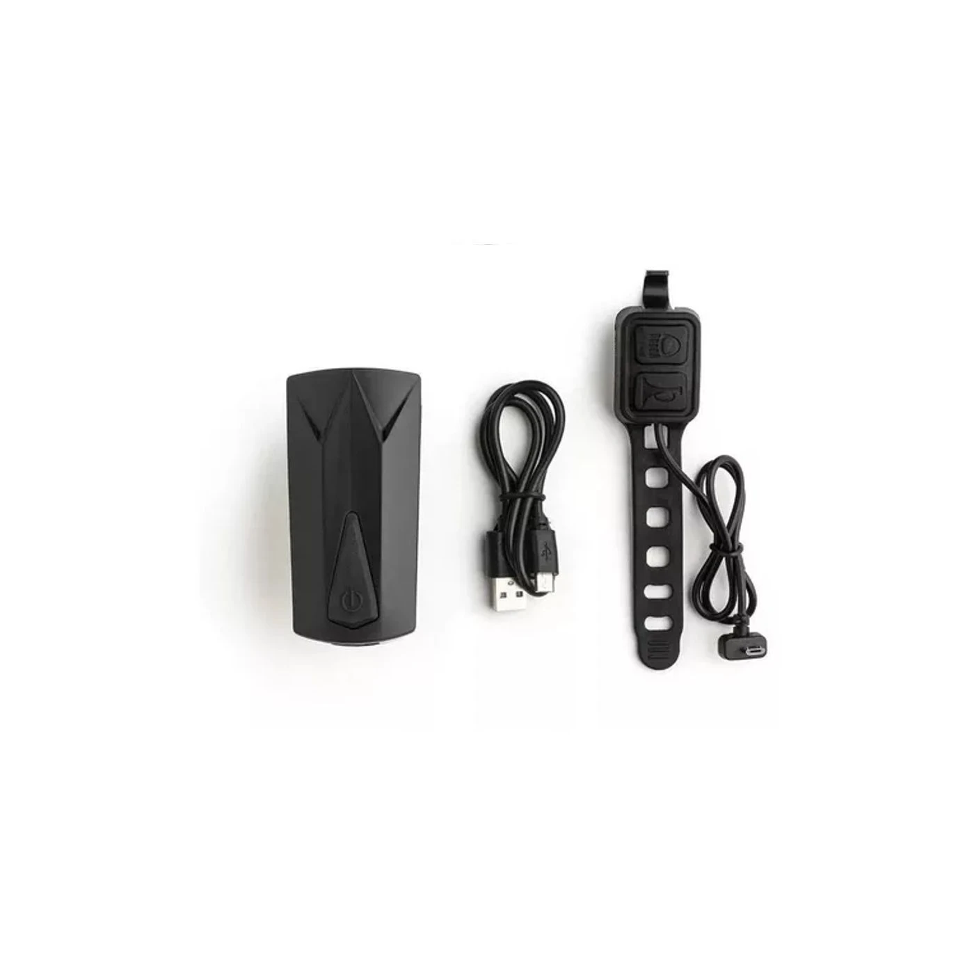 Possui 190 lumens, iluminação com 5 fases e resistente a água, bateria de 1200 mAh e alcance de 100 metros, vem autonomia em farol baixo de 12 horas. Além disso, já vem com buzina integrada e cinta de silicone do farol.