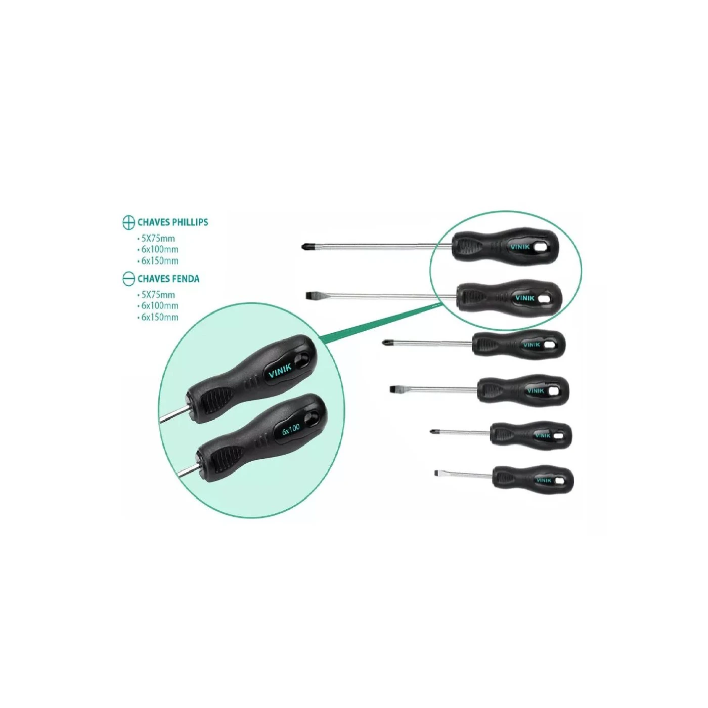 - Material : Aço de alta resistência, cromado e pontas magnetizadas.