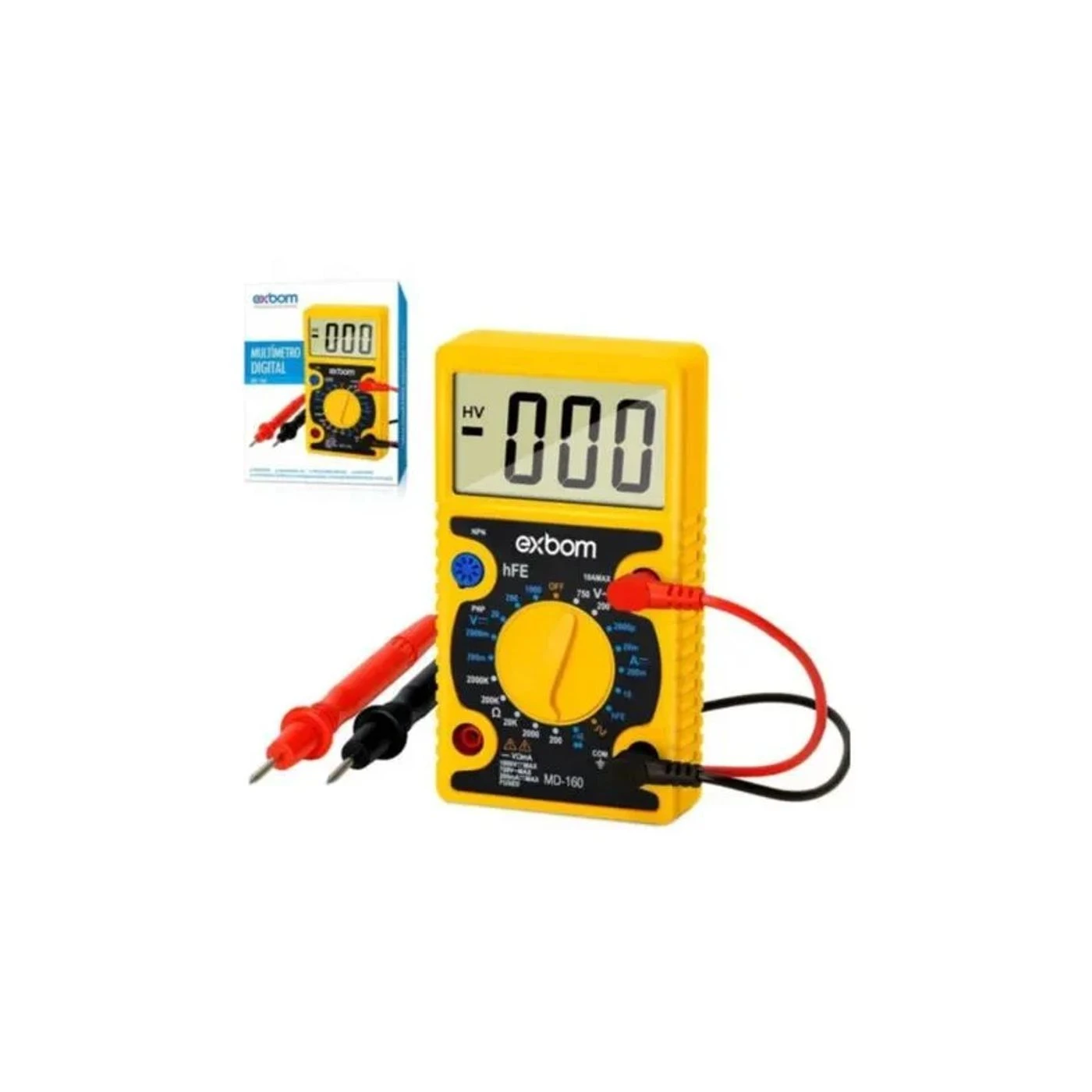 O multímetro MD-160L é um instrumento digital portátil, com fusível de auto restauração, teste de linha viva, hoste protetor, LCD de 62x32 mm com o máximo caracteres 1999 ,congelamento de leitura, desligamento automático e mudança de faixa manual. Realiza medidas de tensão DC e AC, corrente DC, resistência e testes de linha viva, hFE de transistor, diodo e continuidade.