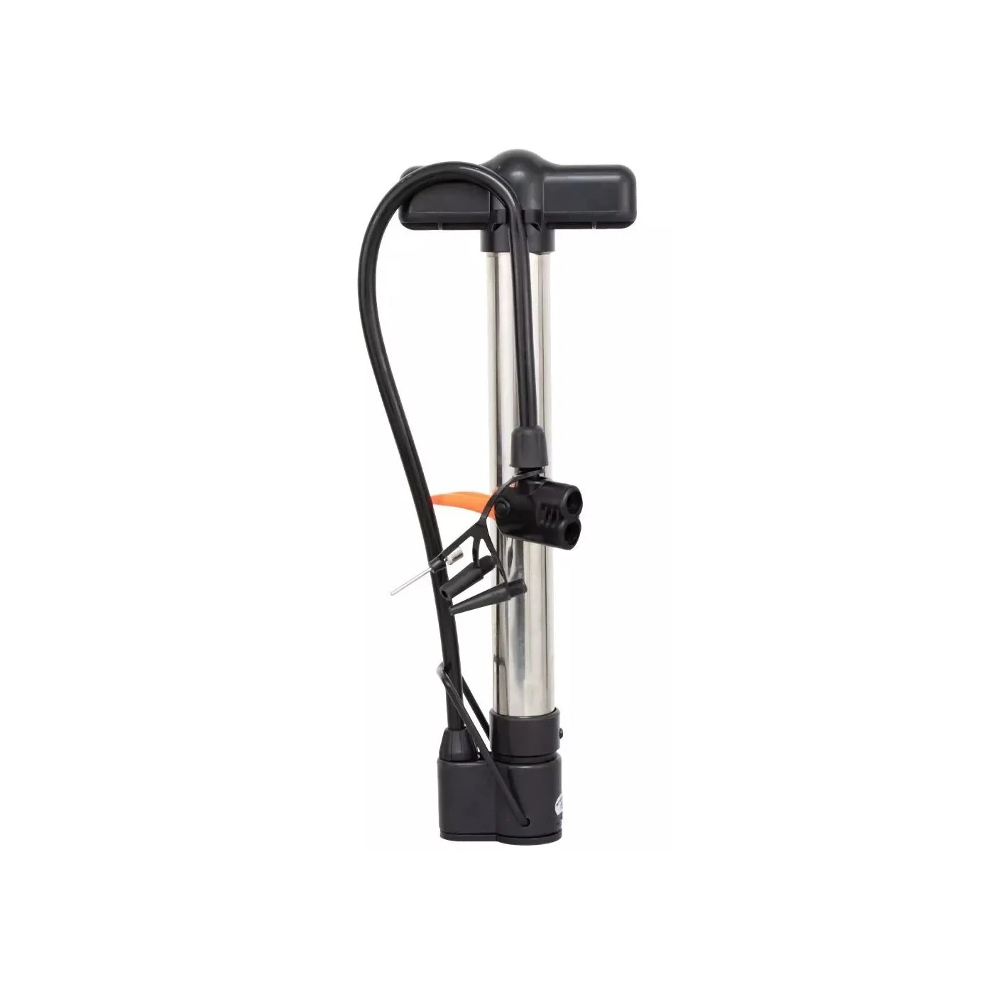 - Possui um bico duplo, isso possibilita que ela seja utilizada com válvulas Presta (bico fino) ou com válvula Shader (americana / bico grosso)