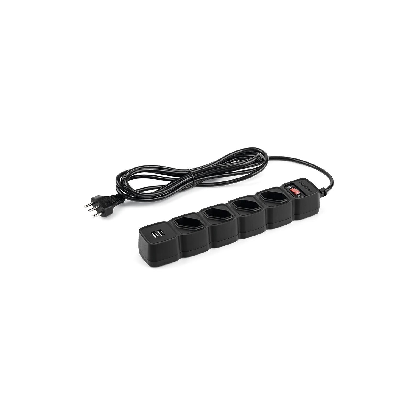 Com 4 tomadas em disposição diagonal, o EPE 204 USB facilita a conexão de plugues que ocupam mais espaço.