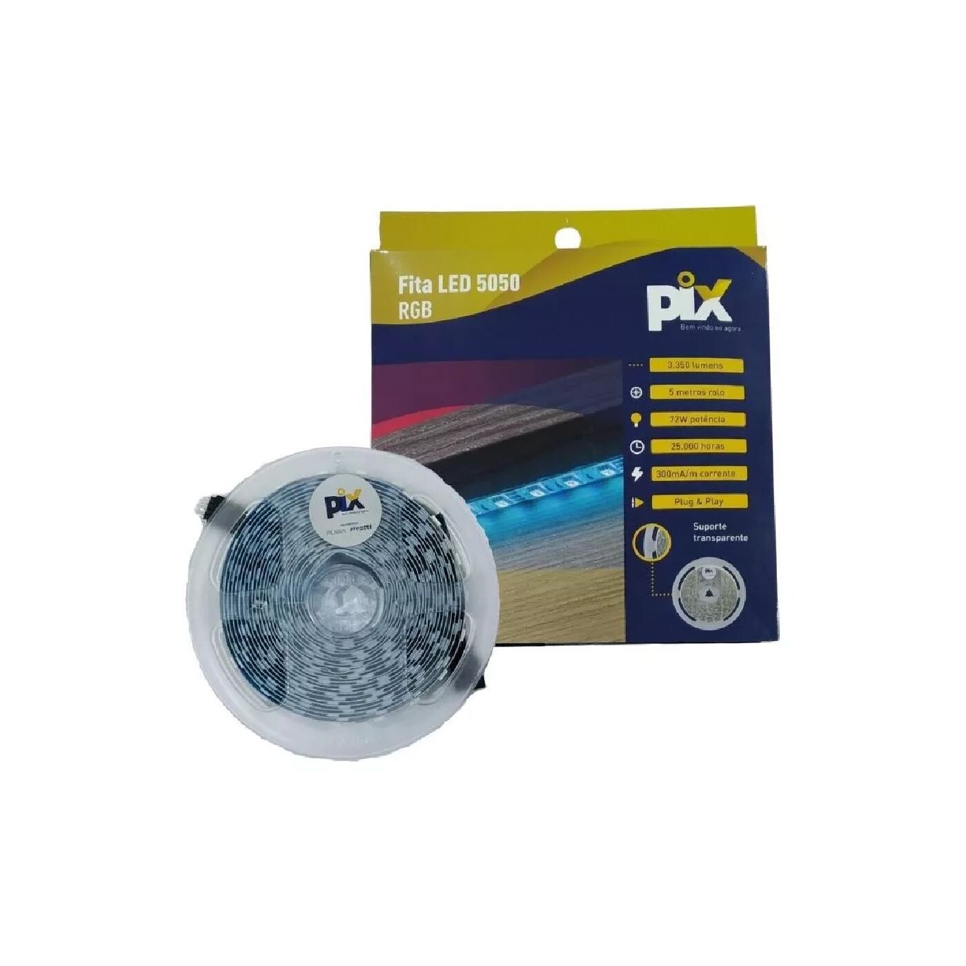 Fita De Led 5050 Cor RGB 5 Metros 12V IP65 Pix