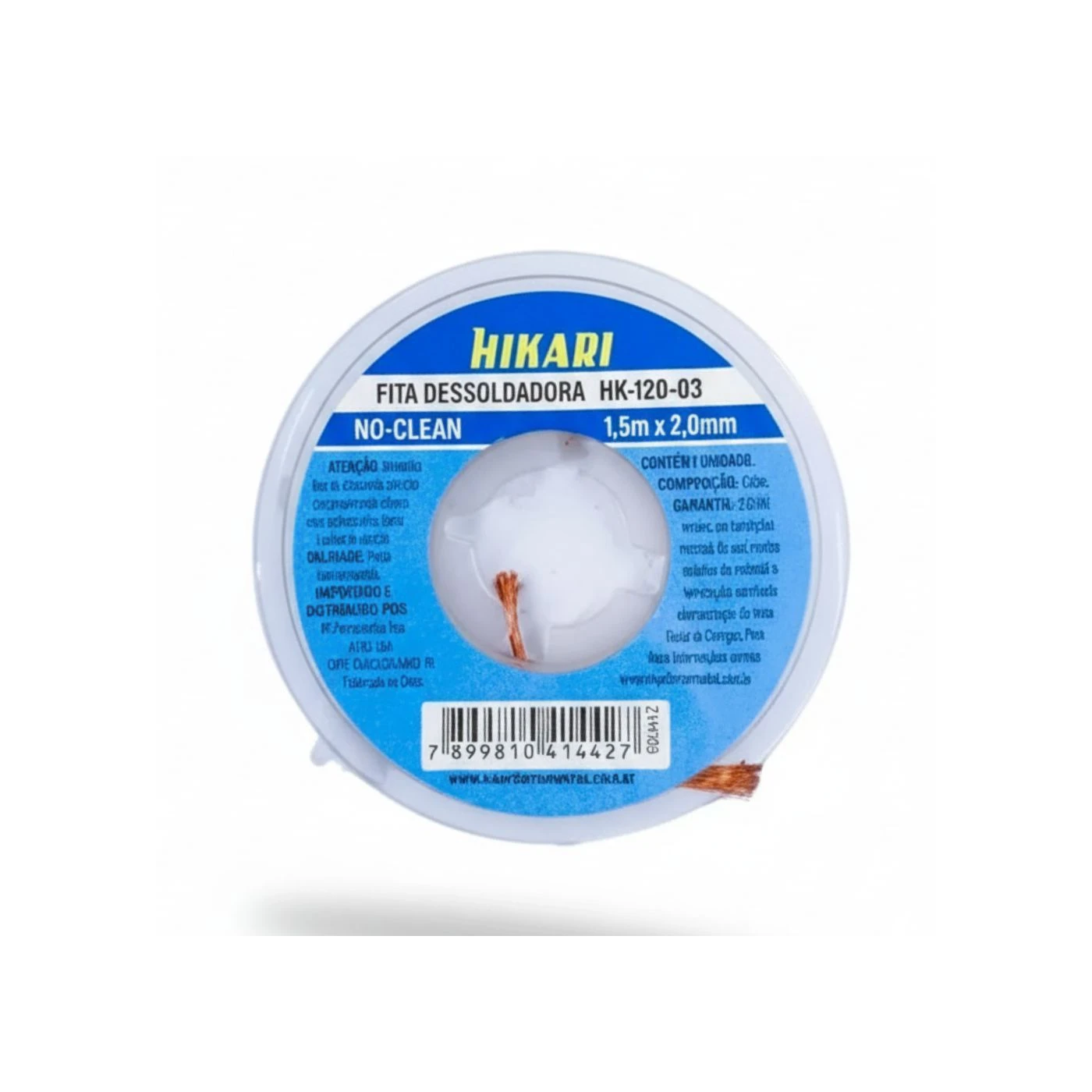 A Fita Dessoldadora HK120-03 da Hikari é ideal para remoção de solda em placas eletrônicas, proporcionando precisão e eficiência no processo de dessoldagem. Fabricada com malha de cobre de alta qualidade, garante rápida absorção do excesso de solda sem danificar os componentes. Indicada para profissionais e hobistas que buscam acabamento limpo e seguro em reparos eletrônicos.
