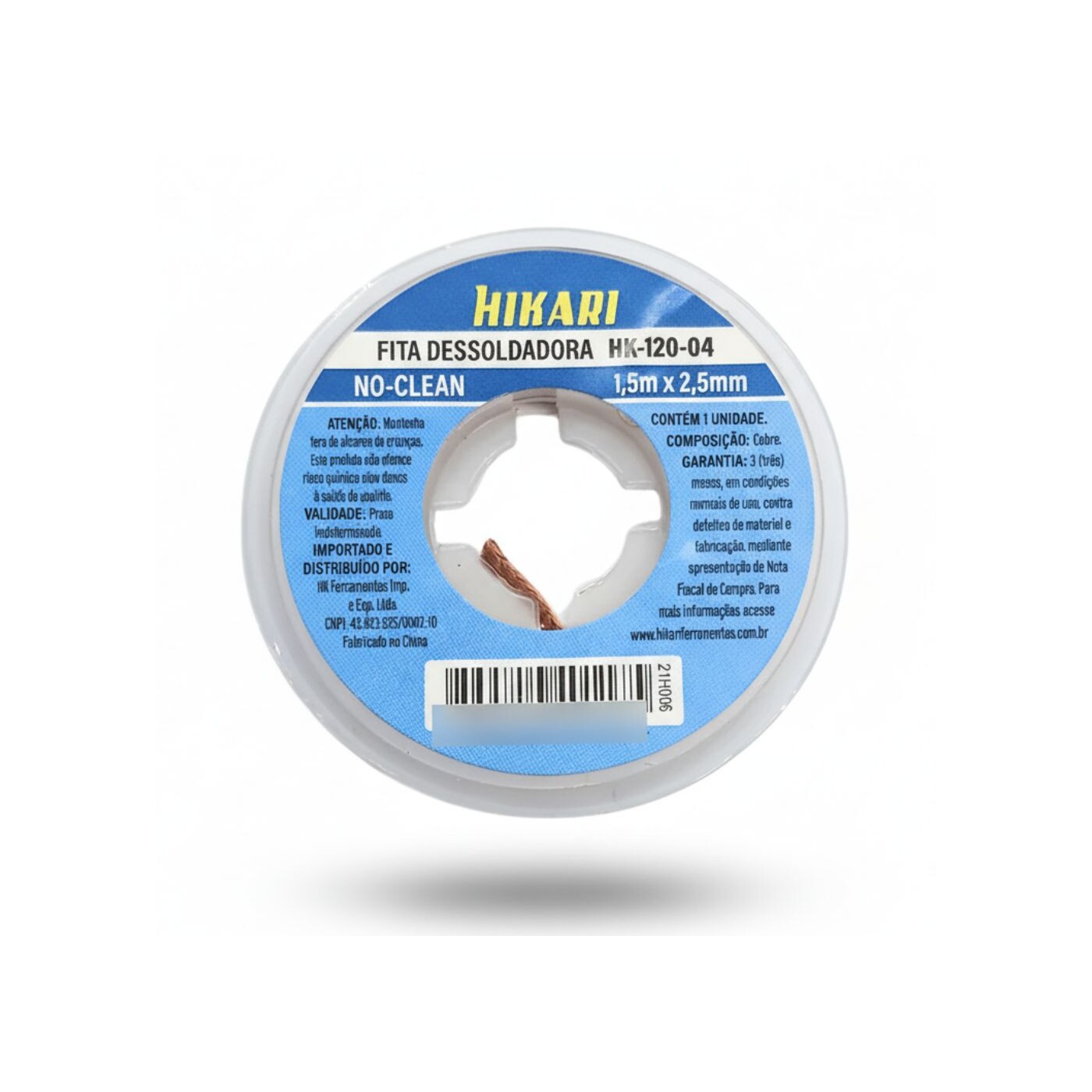 A Fita Dessoldadora HK120 da Hikari é indicada para remoção eficiente de solda em placas eletrônicas, garantindo precisão e segurança durante o processo de dessoldagem. Fabricada com cobre de alta qualidade, oferece excelente condutividade térmica e resistência, permitindo absorver o excesso de solda rapidamente sem danificar componentes sensíveis. Ideal para uso em manutenção, reparos eletrônicos e trabalhos profissionais.