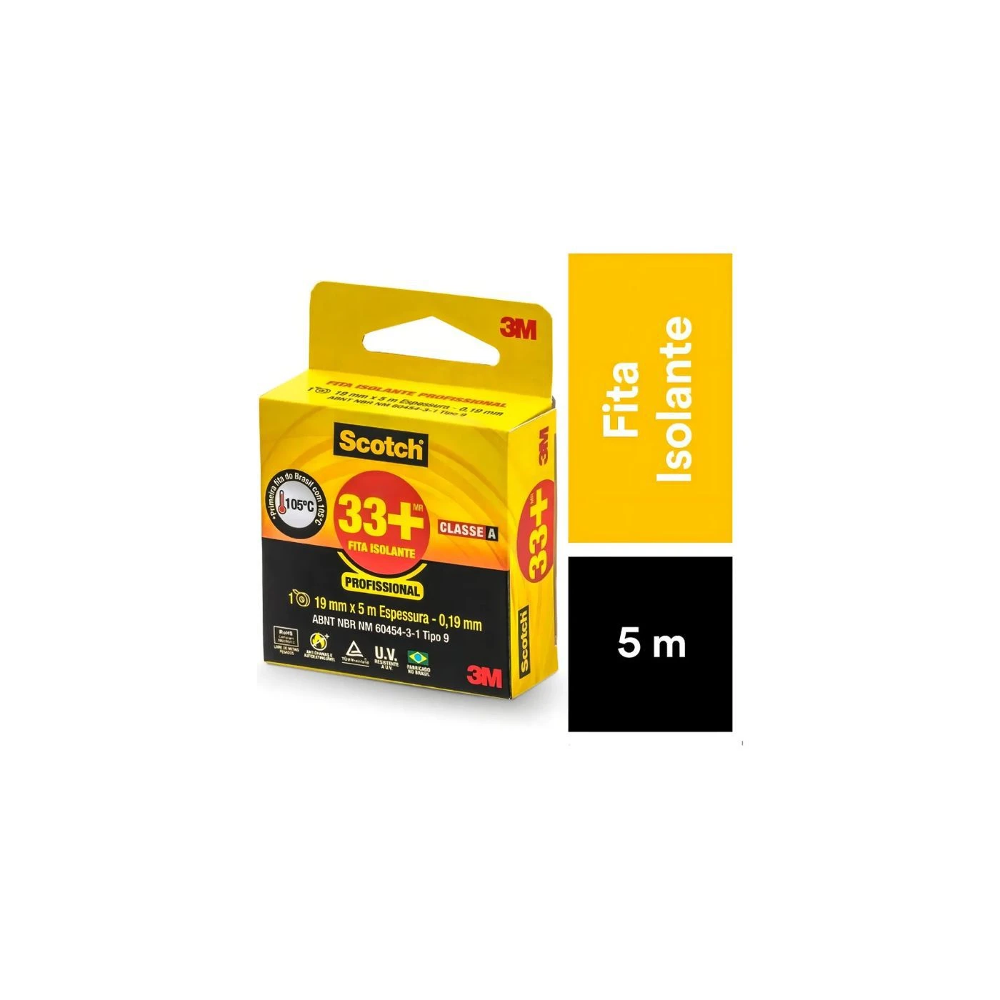 Fita Isolante 33+ 19mm X 5m 3m Scotch Premium Profissional