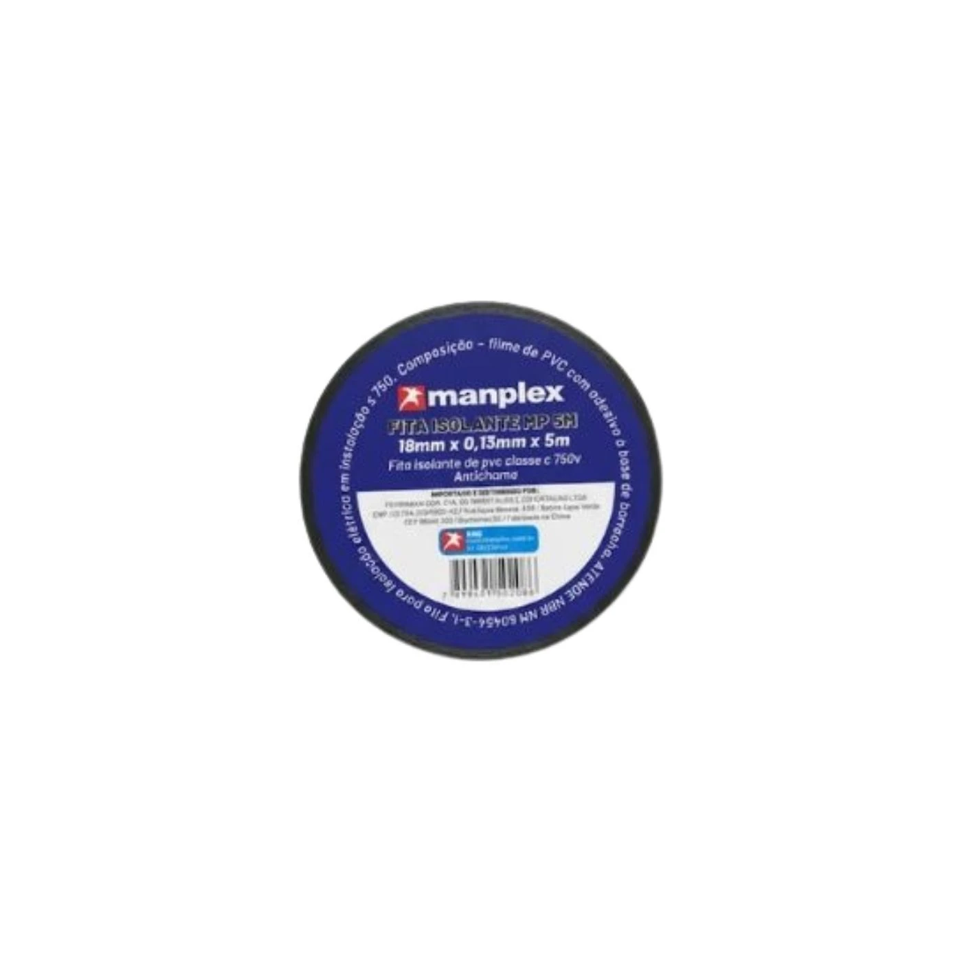 Fita isolante de alta qualidade indicada para uso em instalações elétricas residenciais e industriais. Produto da marca Manplex, modelo MP05M, com comprimento de 5 metros, cor preta, resistente a altas temperaturas e à abrasão, proporcionando isolamento seguro e durável.