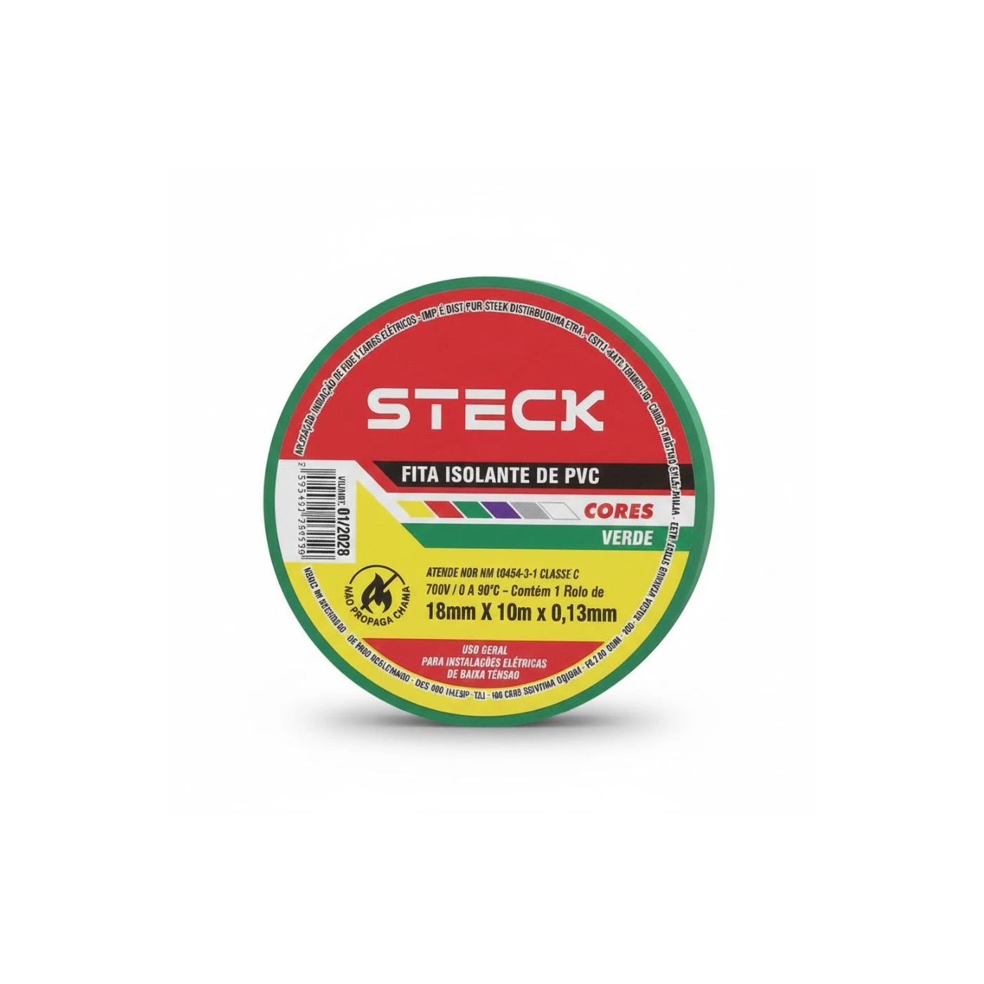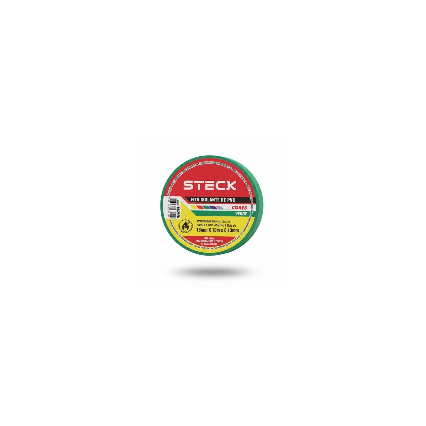 Fita isolante de alta qualidade, ideal para uso elétrico residencial e industrial, proporcionando isolamento seguro e durável. Produto da marca Steck, modelo SFT1310VD, com comprimento de 10 metros e cor verde. Flexível, resistente a altas temperaturas e à abrasão, garantindo proteção confiável em conexões e reparos elétricos.