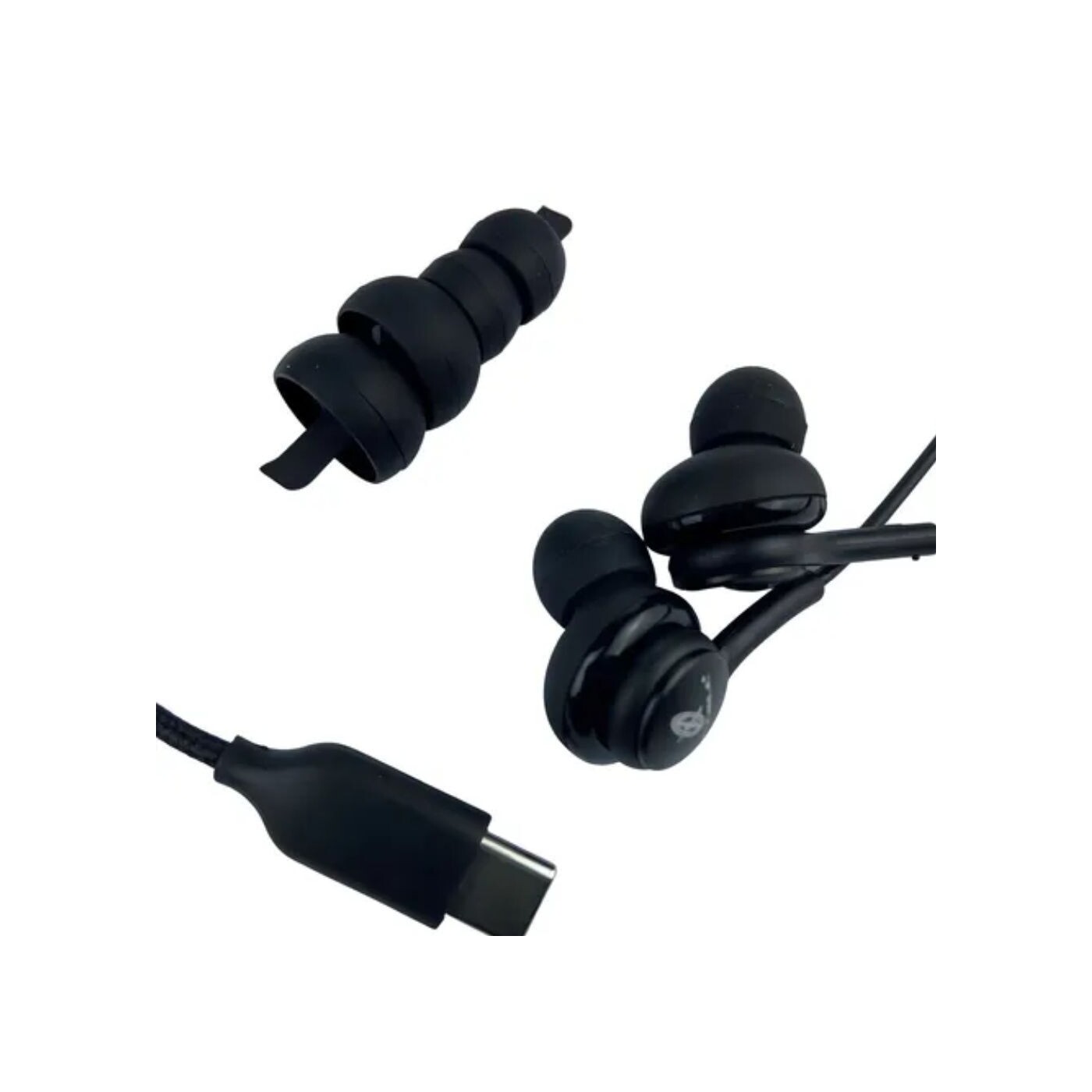 O plugue Type-C distribui o som entre o fone de ouvido esquerdo e direito uniforme-mente