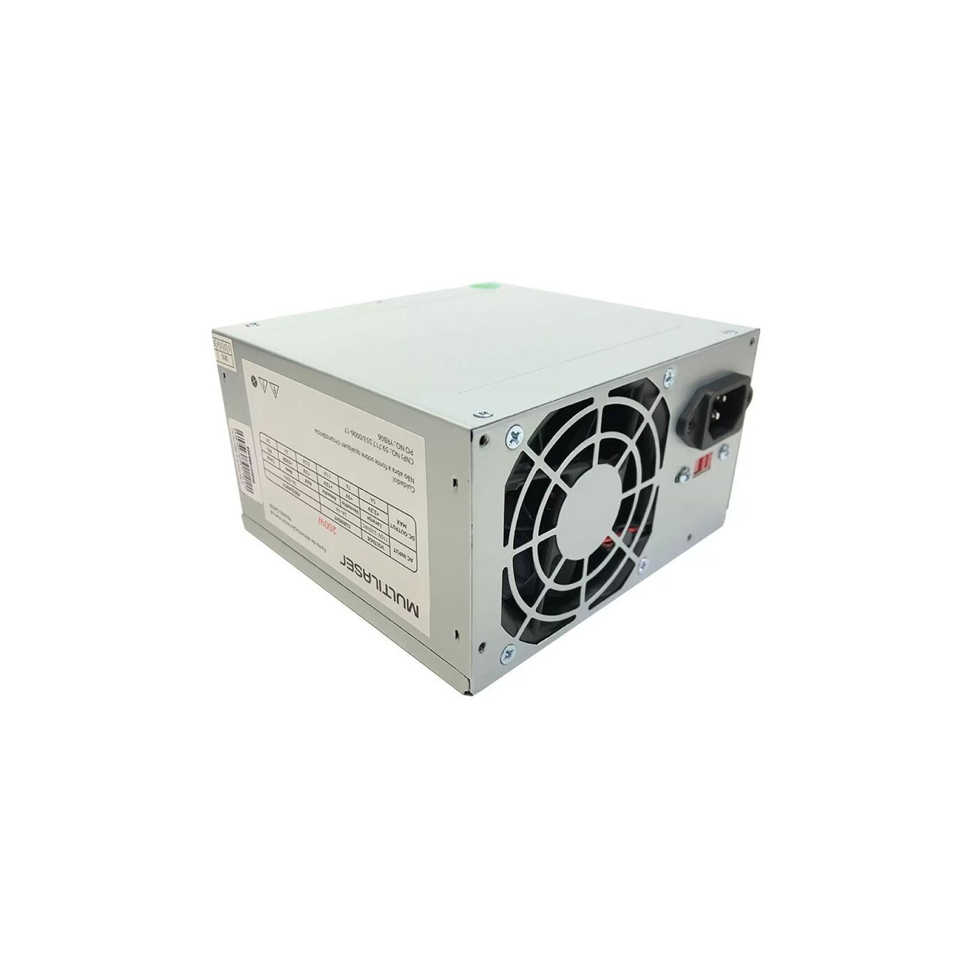 - Fonte de alimentação Multilaser GA039 de 200 W reais padrão ATX versões 2.03 com 24 pinos (20 + 4 pinos), podendo ser usada em placas mãe de 20 ou 24 pinos no cabo de alimentação.