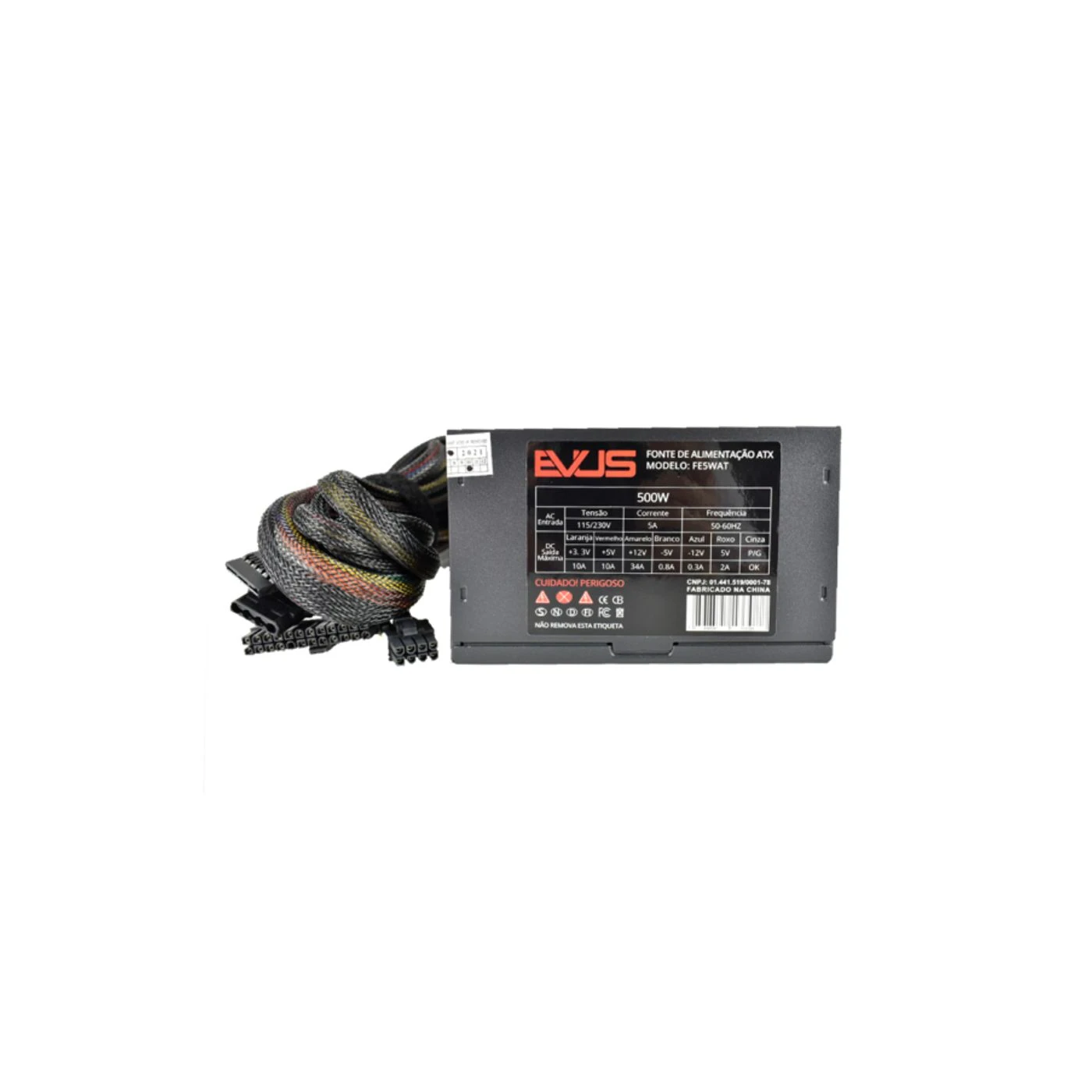 Fonte Evus FT-500 atx 500w Reais 20/24p 4 Sata FE5WAT