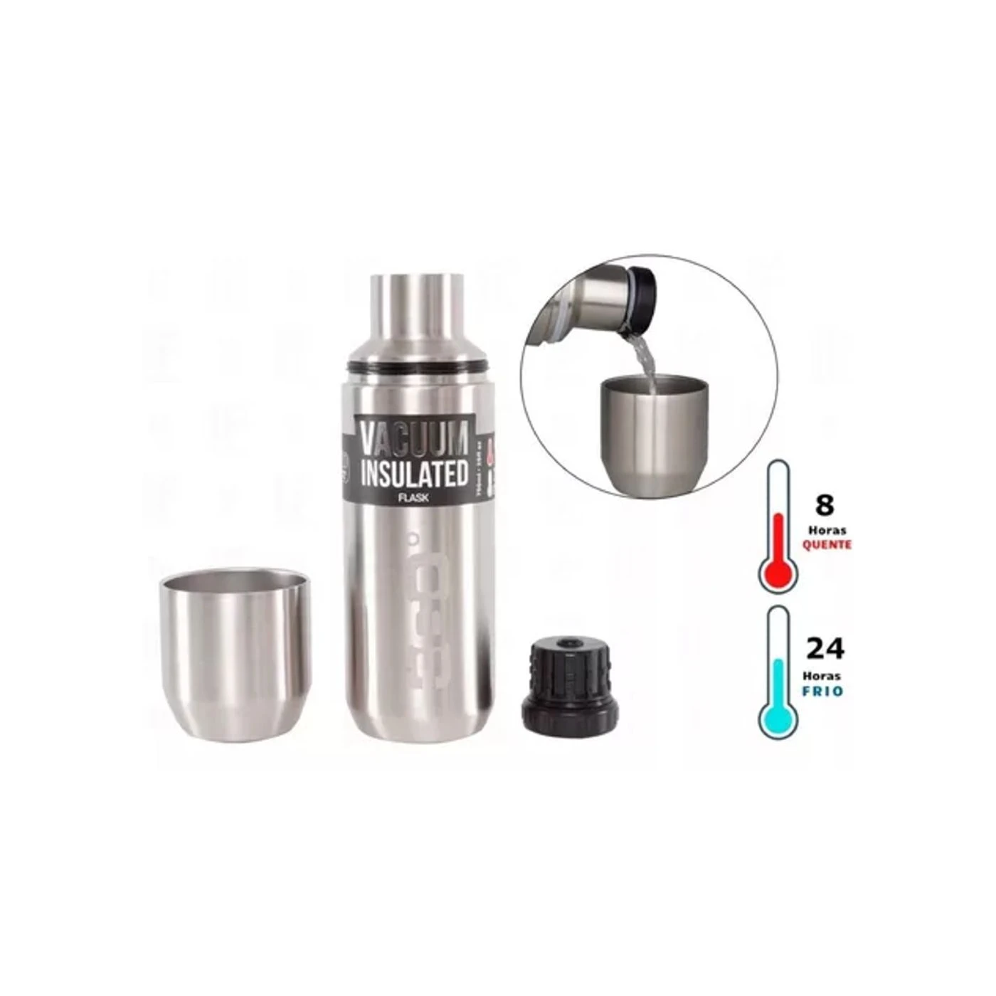 - Mantém líquidos quentes por até 8 horas;