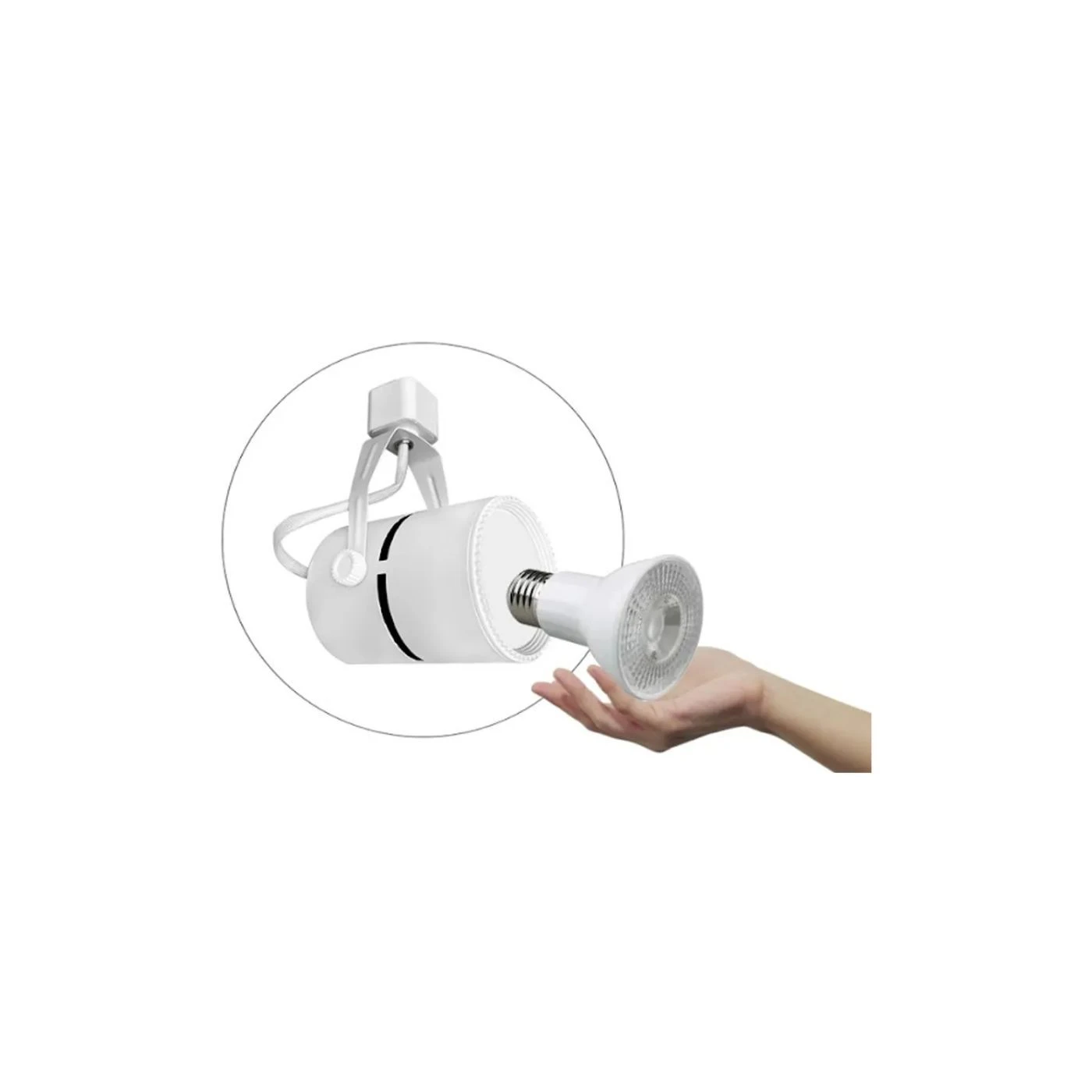 Spot paramodelo ST-7724, ideal para iluminação residencial ou comercial, com design compacto e acabamento branco. Compatível com lâmpadas PAR20 E27, proporciona iluminação direcionada e eficiente, sendo fácil de instalar em trilhos padrão. Produto da marca Rigel, garantindo qualidade e durabilidade.