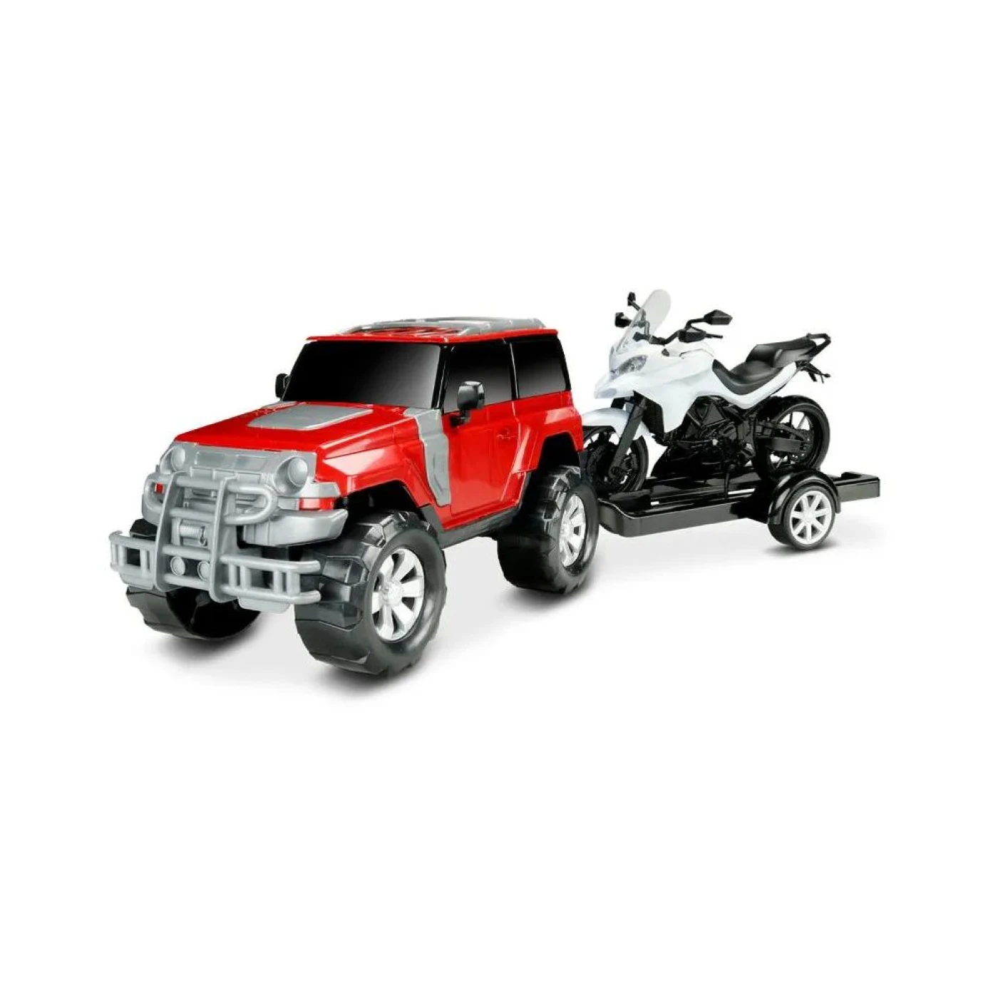 Dispõe de uma carreta com engate para acoplar uma Moto Multi Motors com detalhes incríveis como pneu emborrachado.
