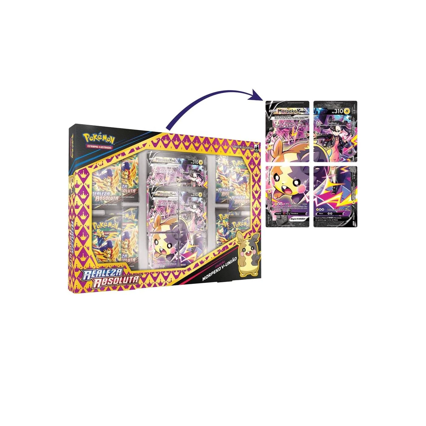 A coleção Morpeko V-UNIÃO de Realeza Absoluta do Pokémon Estampas Ilustradas contém: